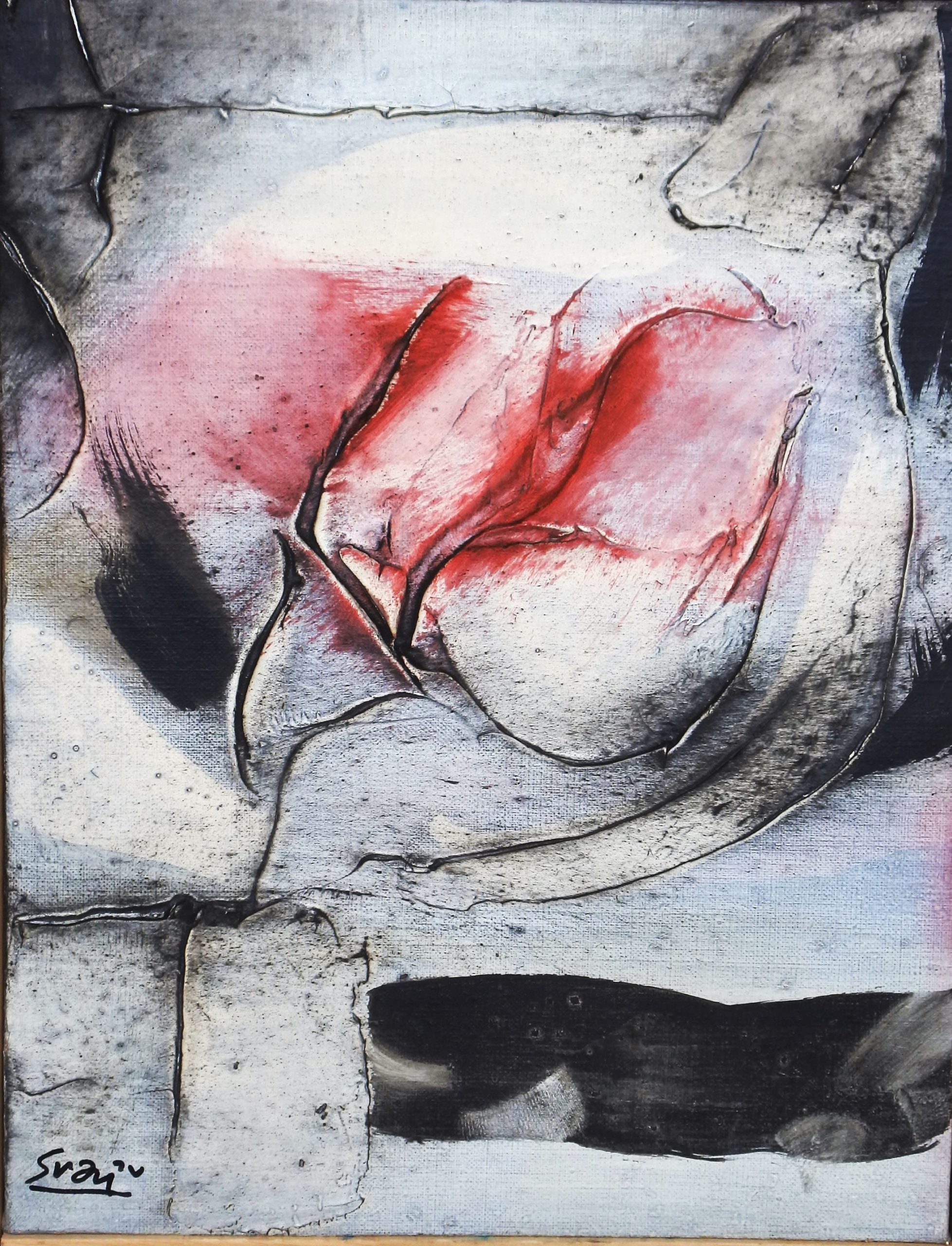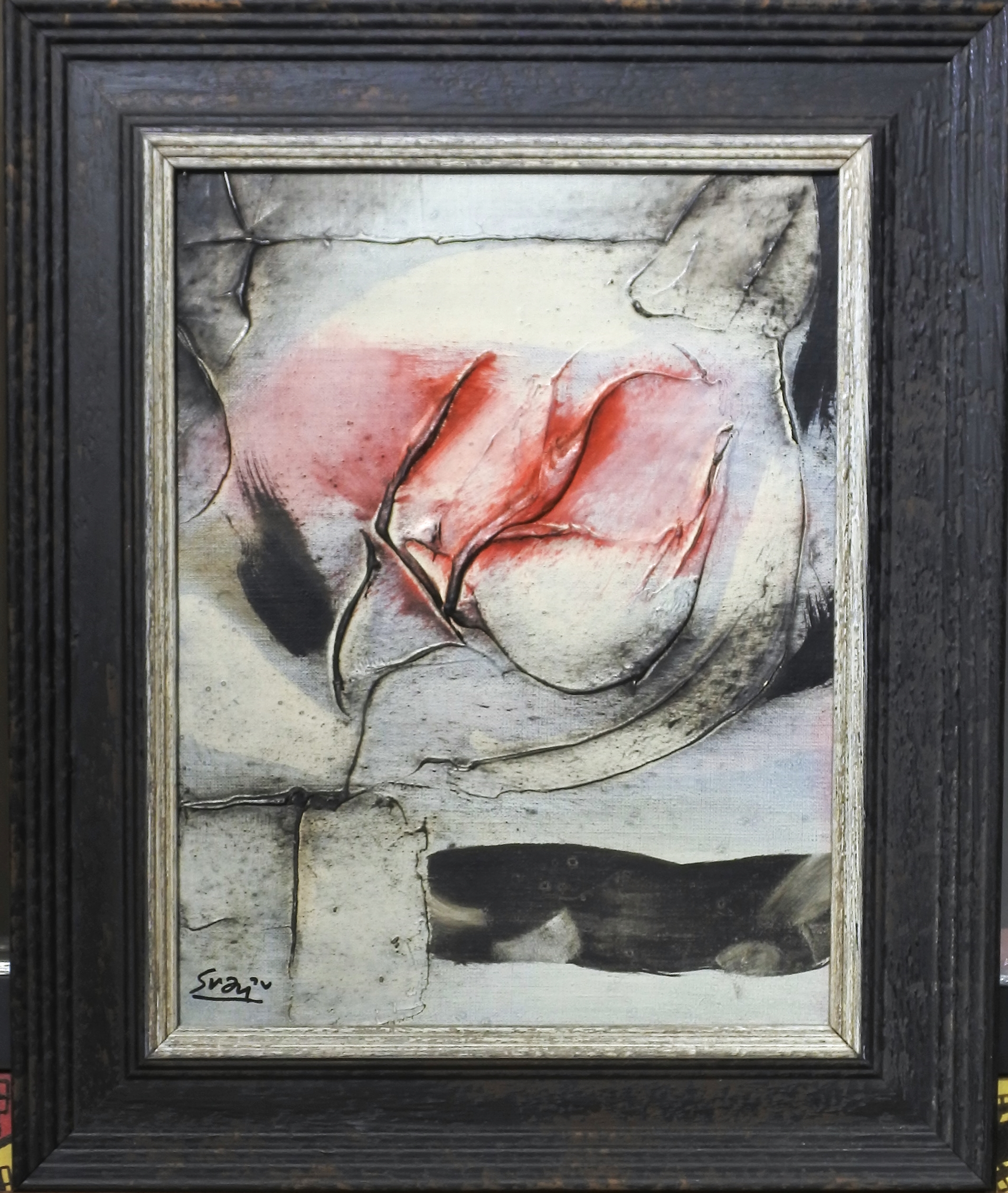 Antonio Suarez, Composición luminiscente, pintura oleo y materia sobre lienzo, enmarcado, pintura 35×27 cms. y marco 48×40 cms.