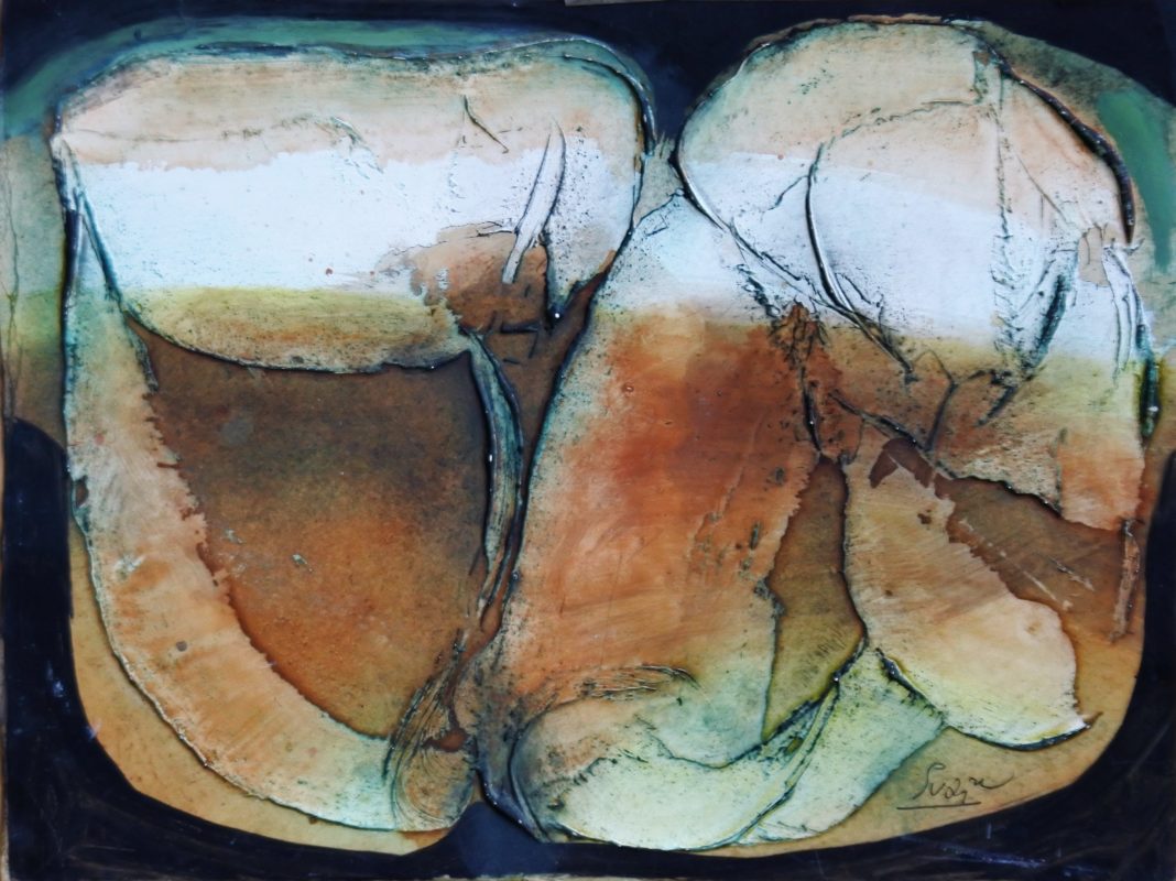 Antonio Suarez, Crisálidas, pintura original técnica mixta cartulina, 24×32 cms.