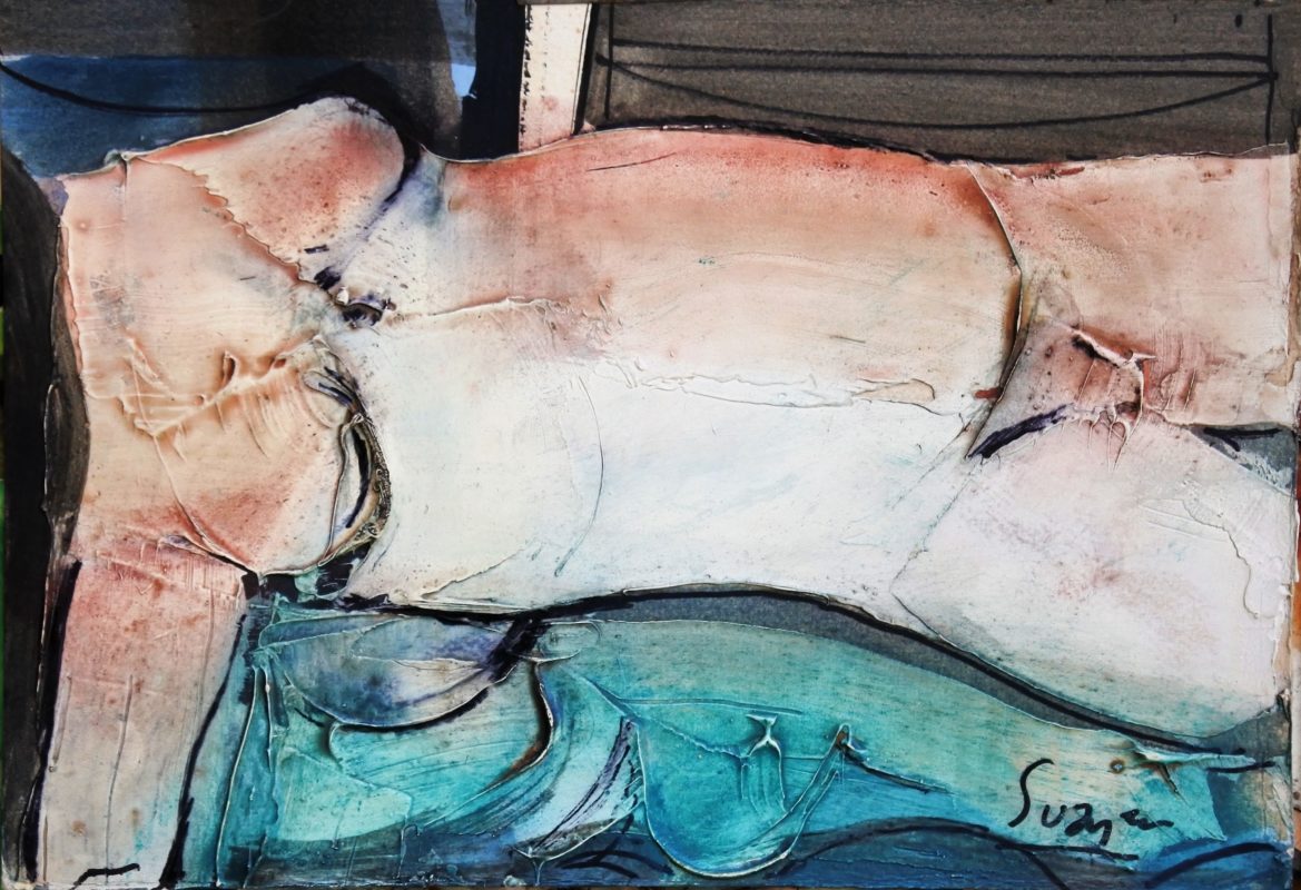 Antonio Suarez, Esplendor en la hierba, pintura original técnica mixta cartulina, 17,50×25,50 cms.