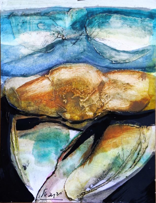 Antonio Suarez, Estratos, pintura original técnica mixta cartulina, 32,30×24,70 cms.