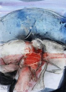 Antonio Suarez, Hacia el globo azul, pintura original técnica mixta cartulina, 35×25 cms.