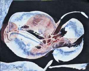 Antonio Suarez, Presentimiento nocturno, pintura original técnica mixta cartulina, 22×25 cms.