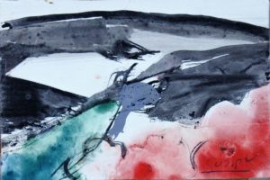 Antonio Suarez, Sobre el valle blanco, pintura original técnica mixta cartulina, 10,20×15,40 cms.