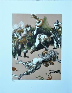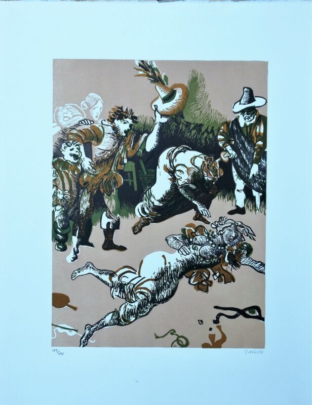 Antonio Zarco, Rinconete y Cortadillo X, Xilografía original, edición 195 ejemplares, numerado y firmado a lápiz, 49×38 cms.