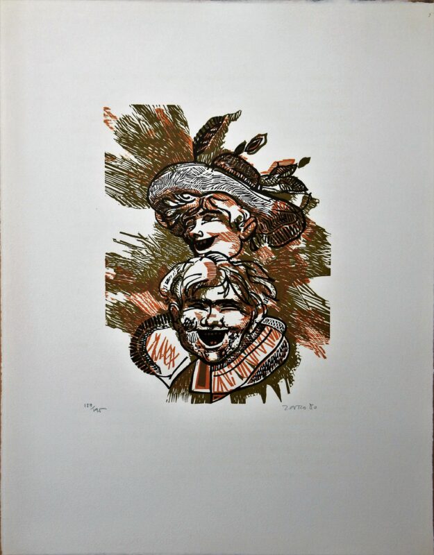 Antonio Zarco, Rinconete y Cortadillo XI, xilografía original, edición 195 ejemplares, numerado y firmado a lápiz, 49×38 cms.