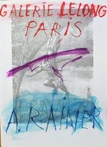 Arnulf Rainer, Tour Eiffel et Composition informelle, Cartel original litografico exposición en Galerie Lelong Paris en 1990, Impreso por Mourlot, 77×56 cms.