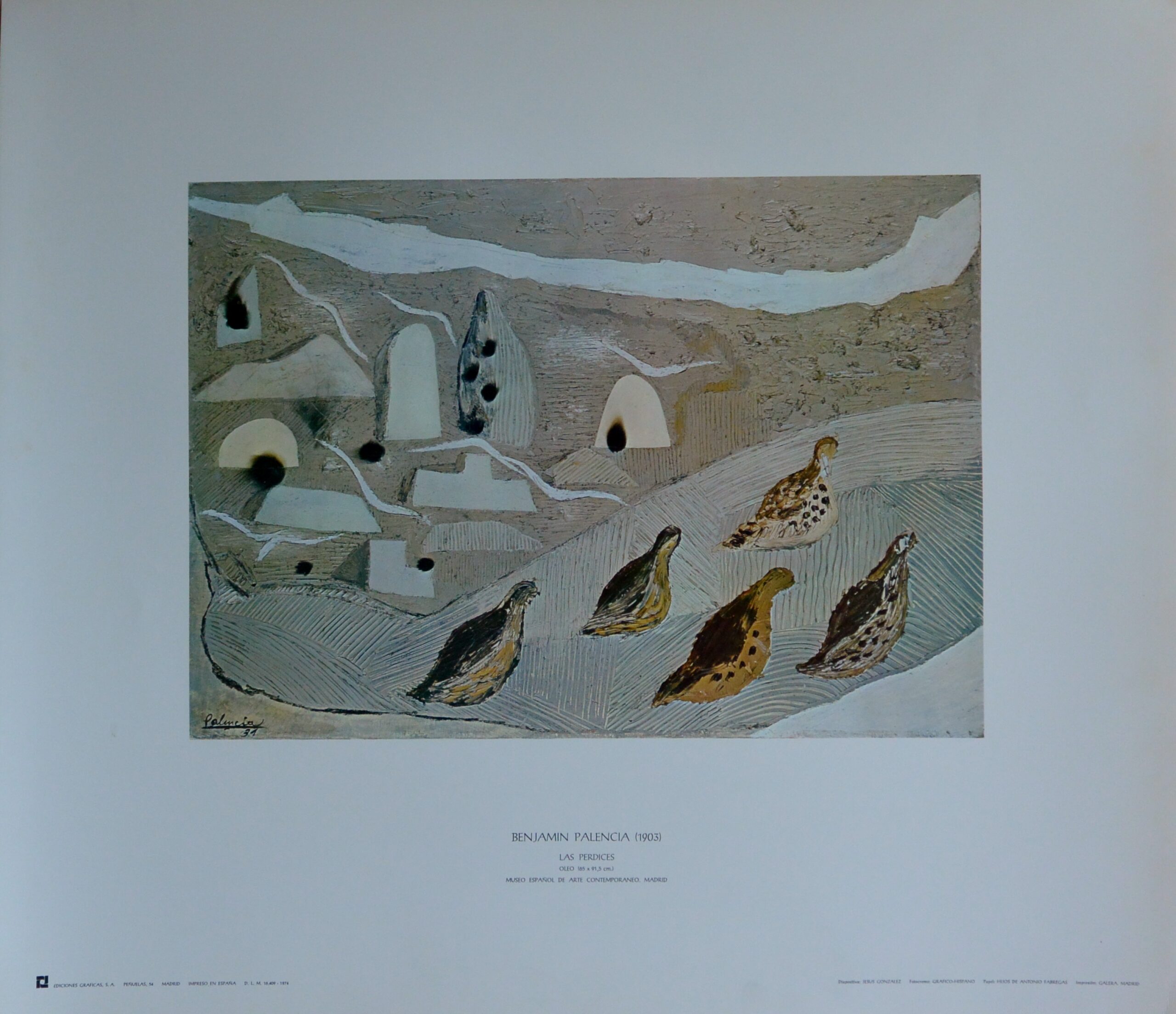 Benjamín Palencia, Las perdices, cartel reproducción, 55×63 cms.