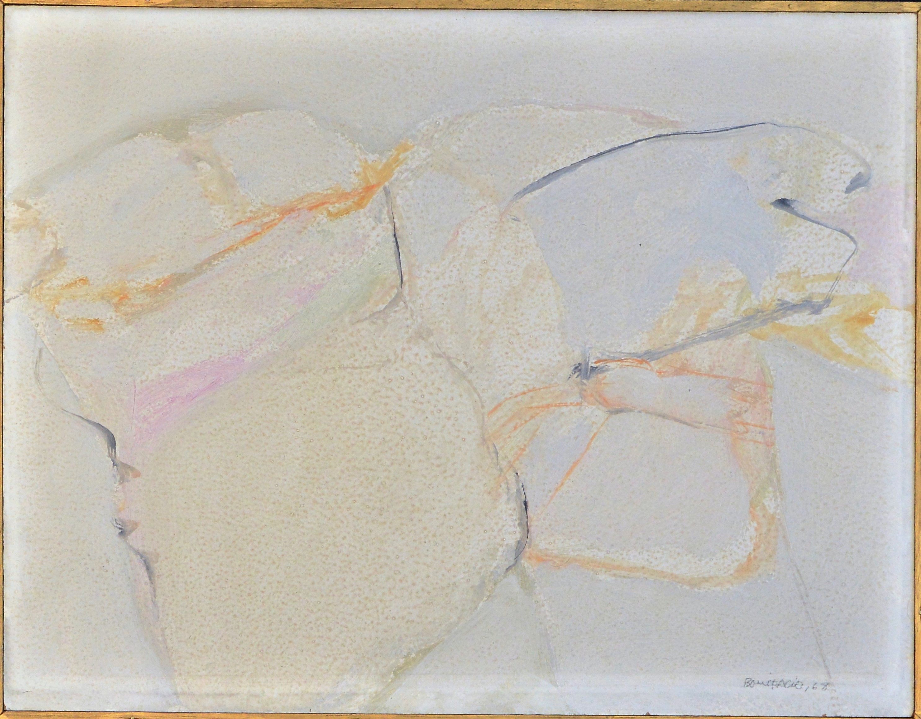 Bonifacio 1968, Composición sin título, oleo tablex, enmarcado, pintura 27×35 cms. y marco 51×62 cms.