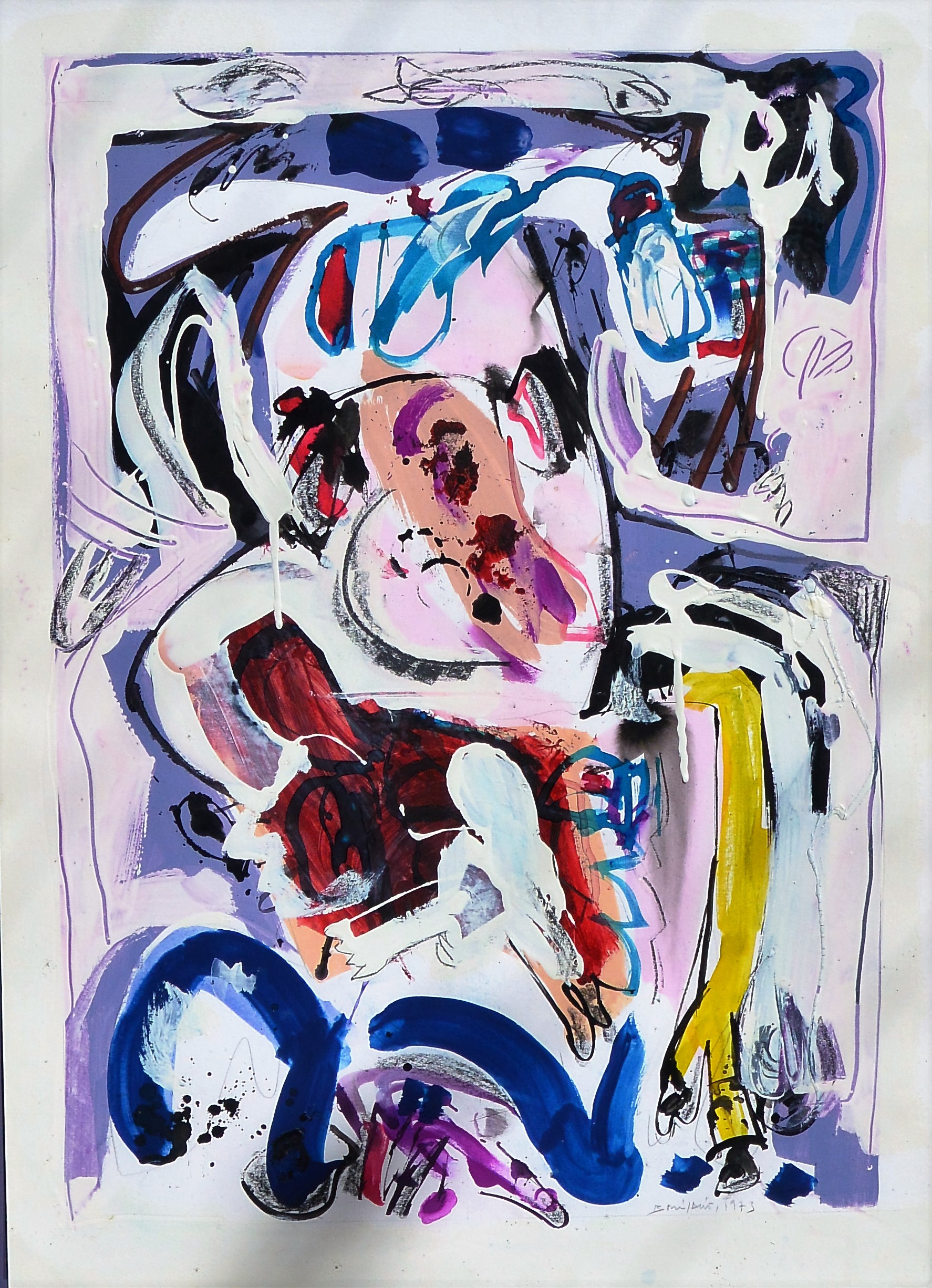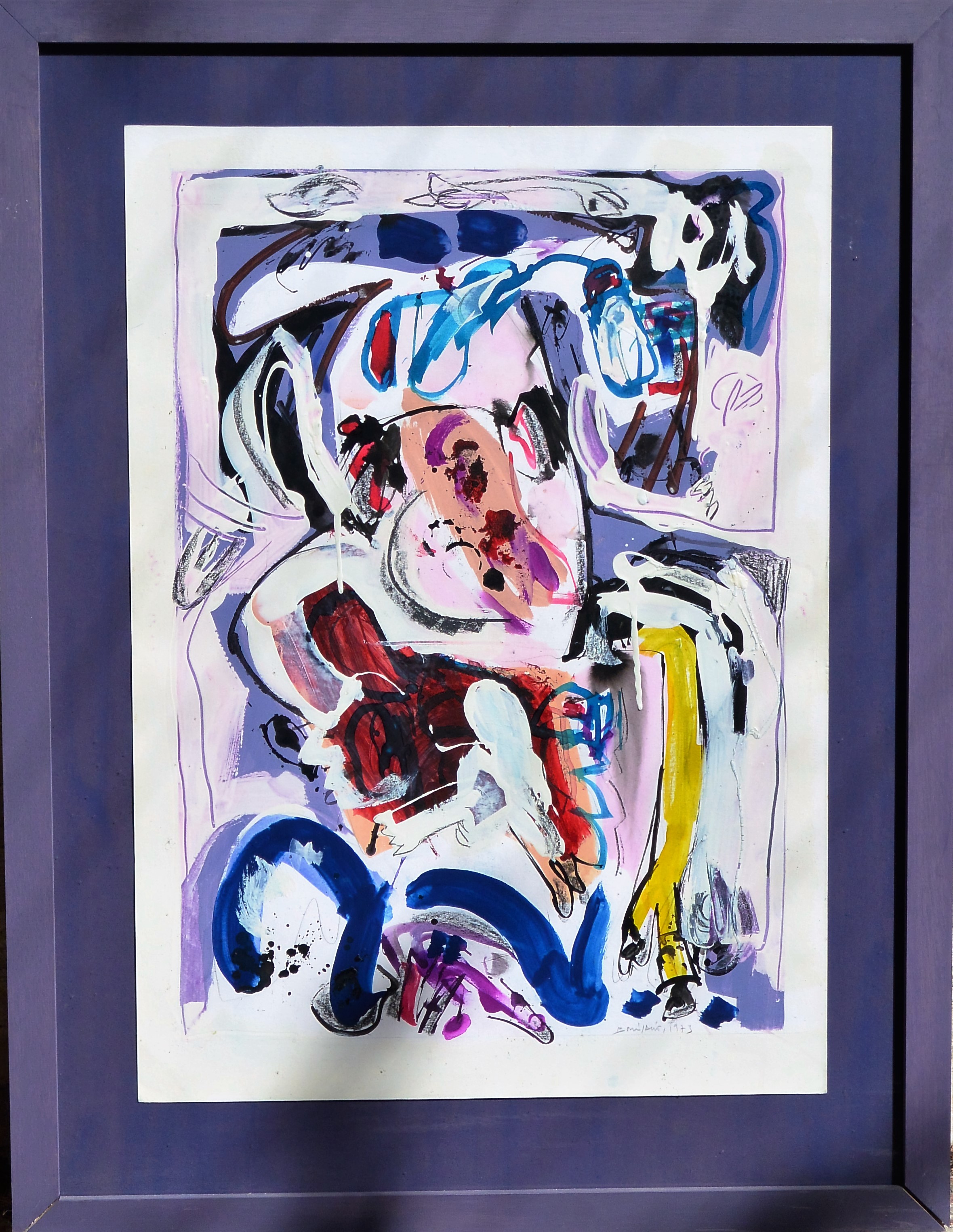 Bonifacio 1973, Composición sin título, pintura cartulina, enmarcado, pintura 63×43 cms. y marco 89×68 cms. Marco incluido