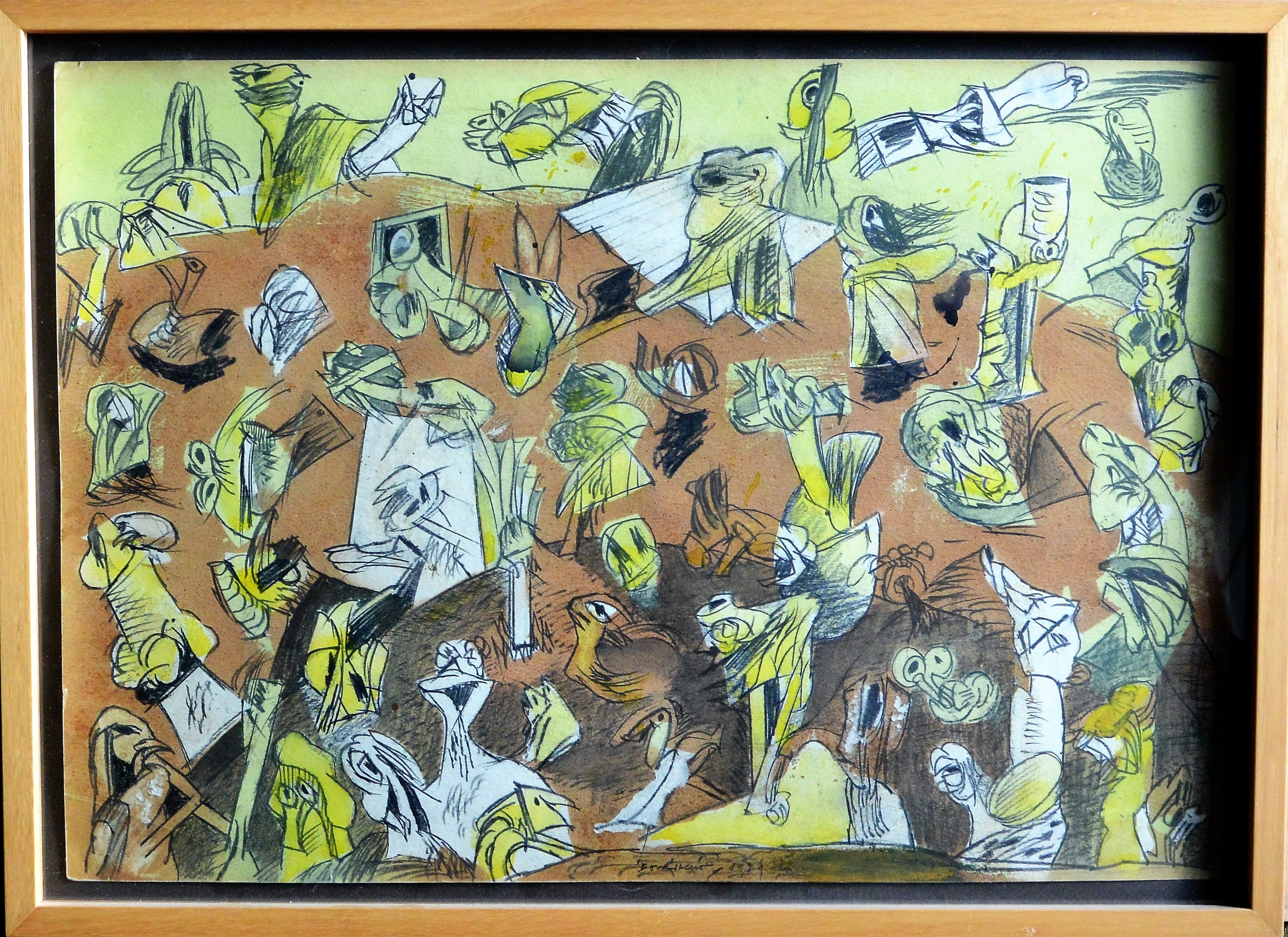 Bonifacio 1981, Homenaje a Saura, lapiz tinta y aguada cartulina , enmarcado, pintura 35×50 cms. y marco 40×54,50 cms. Marco incluido