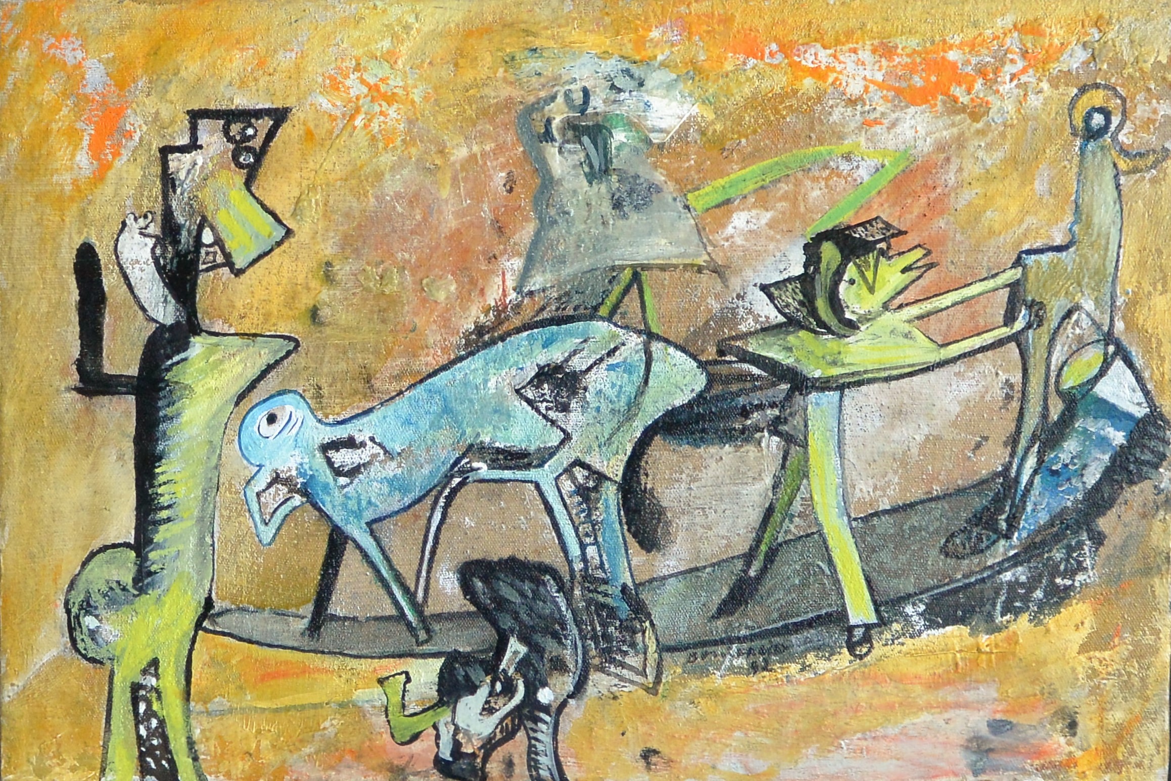 Bonifacio 1992, Para Fefa, pintura oleo lienzo, enmarcado, pintura 22×33 cms. y marco 35×45 cms. dedicado a la galerista Fefa Seiquer