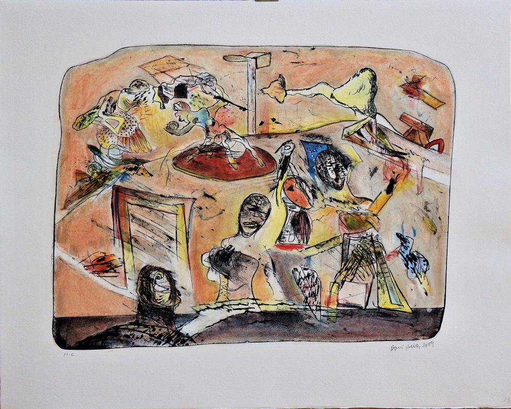 Bonifacio, Exploradores, litografía color, edición 50 ejemplares, numerado h.c., datado 2009 y firmado a lápiz, plancha 36,50×48 cms. y papel 50×63 cms.