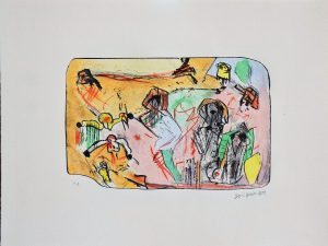 Bonifacio, Mediodia en el campo rosado, litografía color, edición 50 ejemplares, numerado p.a., datado 2009 y firmado a lápiz, plancha 20×31 cms. y papel 38×50 cms.