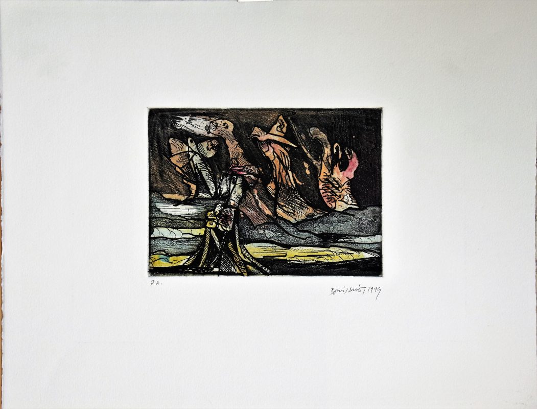 Bonifacio «Caminantes sobre el Paisaje» grabado edición 75 ejemplares numerado y firmado a lápiz, huella 14×19 y papel 33×43 cms