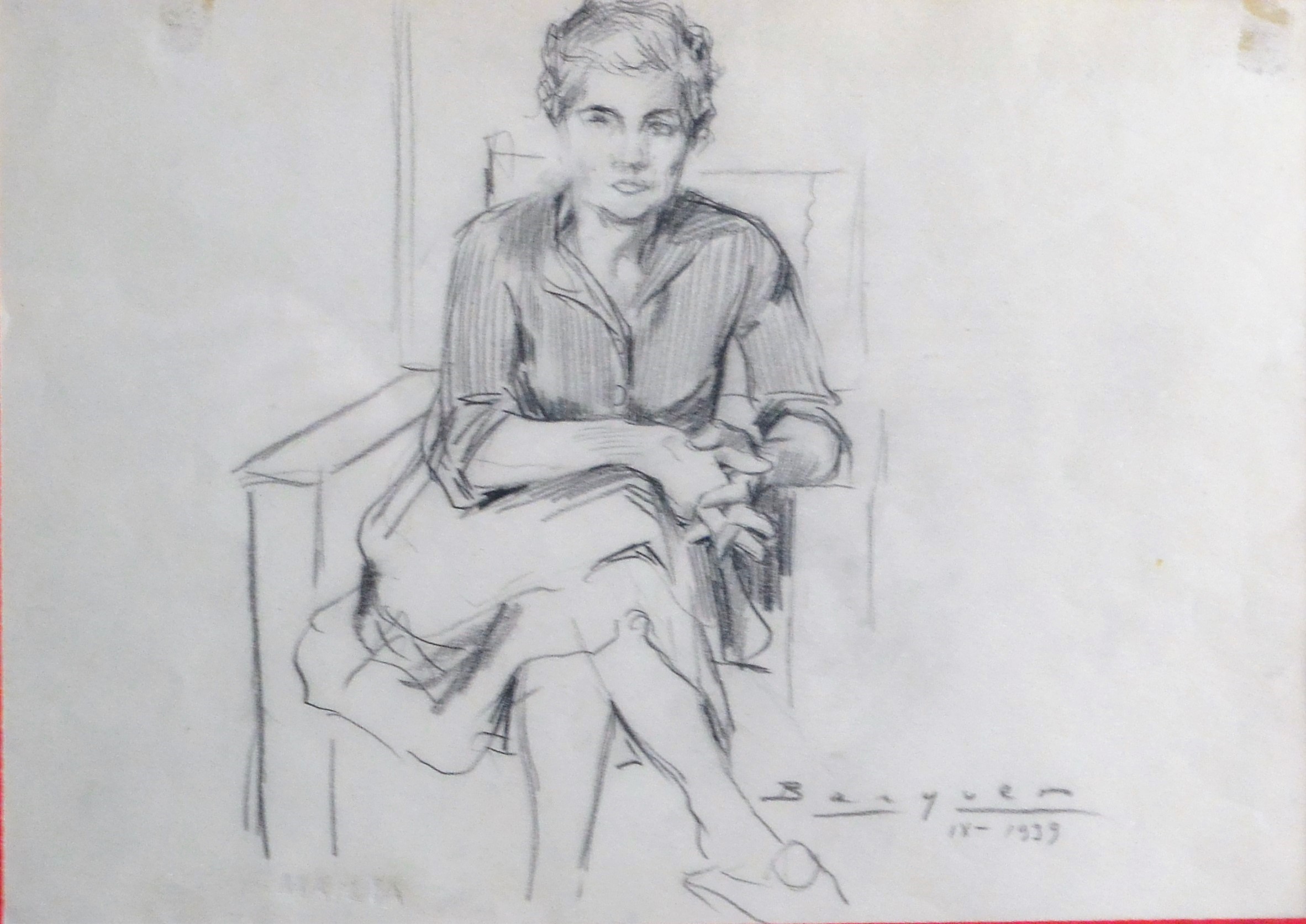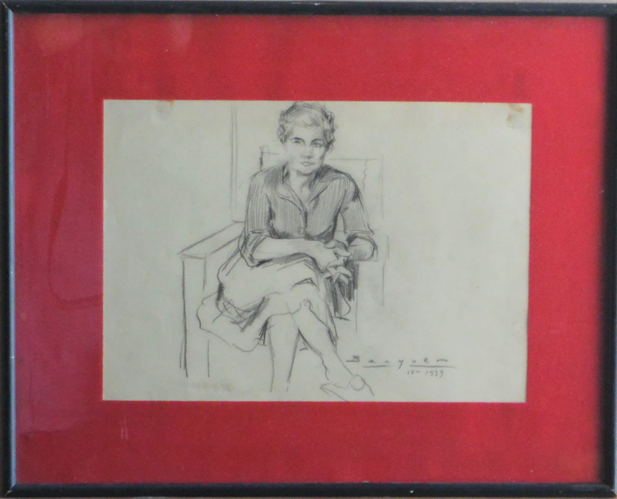 Carlos Becquer 1939, Mujer sentada, dibujo carboncillo papel, enmarcado, papel 22×31 cms. y marco 35×44 cms. Marco incluido