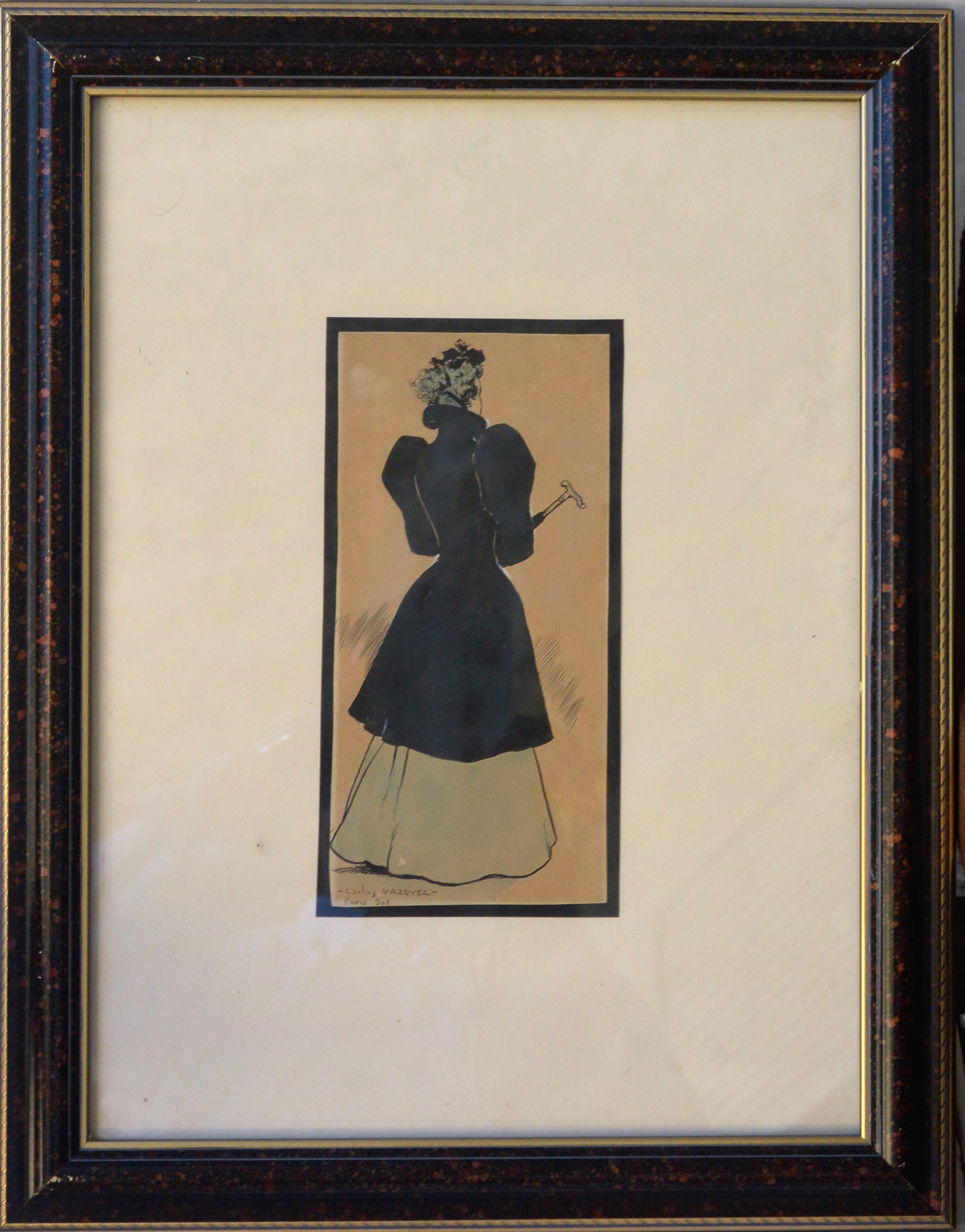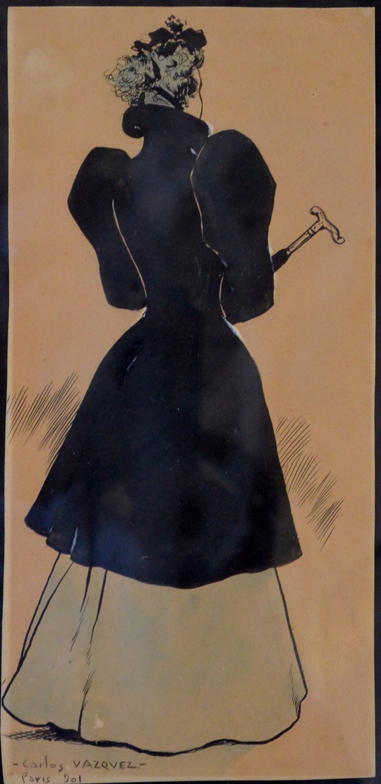 Carlos Vazquez, Dama parisina, dibujo tinta papel, enmarcado, dibujo 21×10 cms. y marco 46×36 cms. Marco incluido