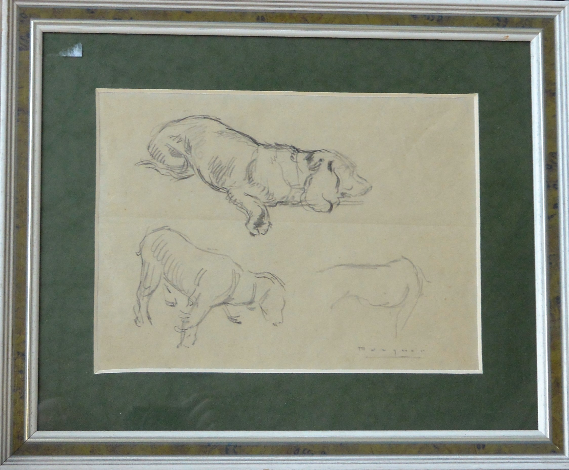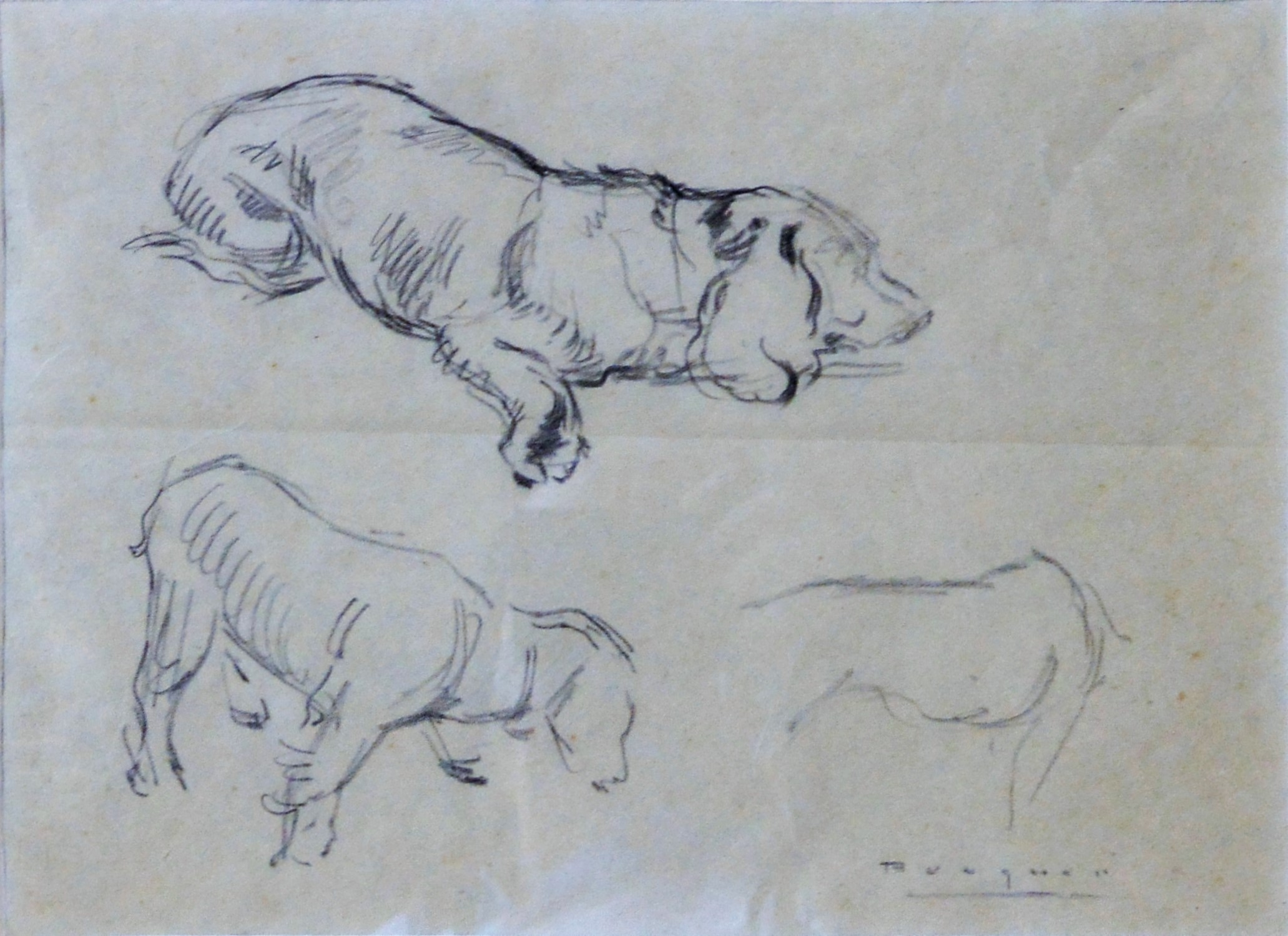 Carlos Becquer, Estudio de perros, dibujo lápiz papel, enmarcado, dibujo 18×25 cms. y marco 30×37 cms. Marco incluido