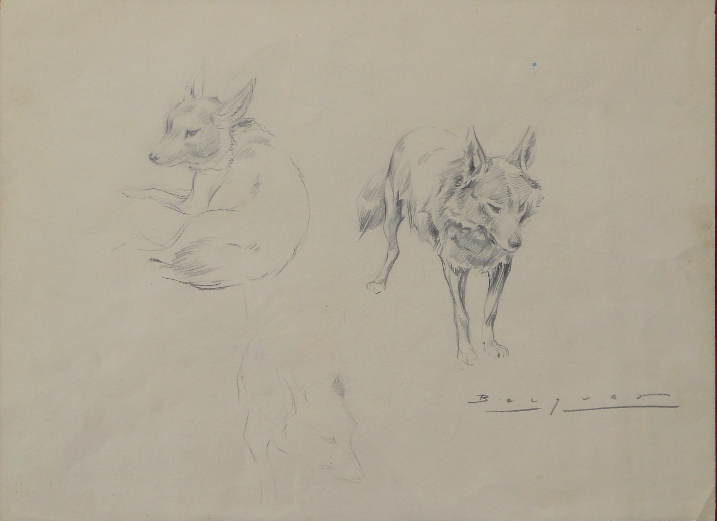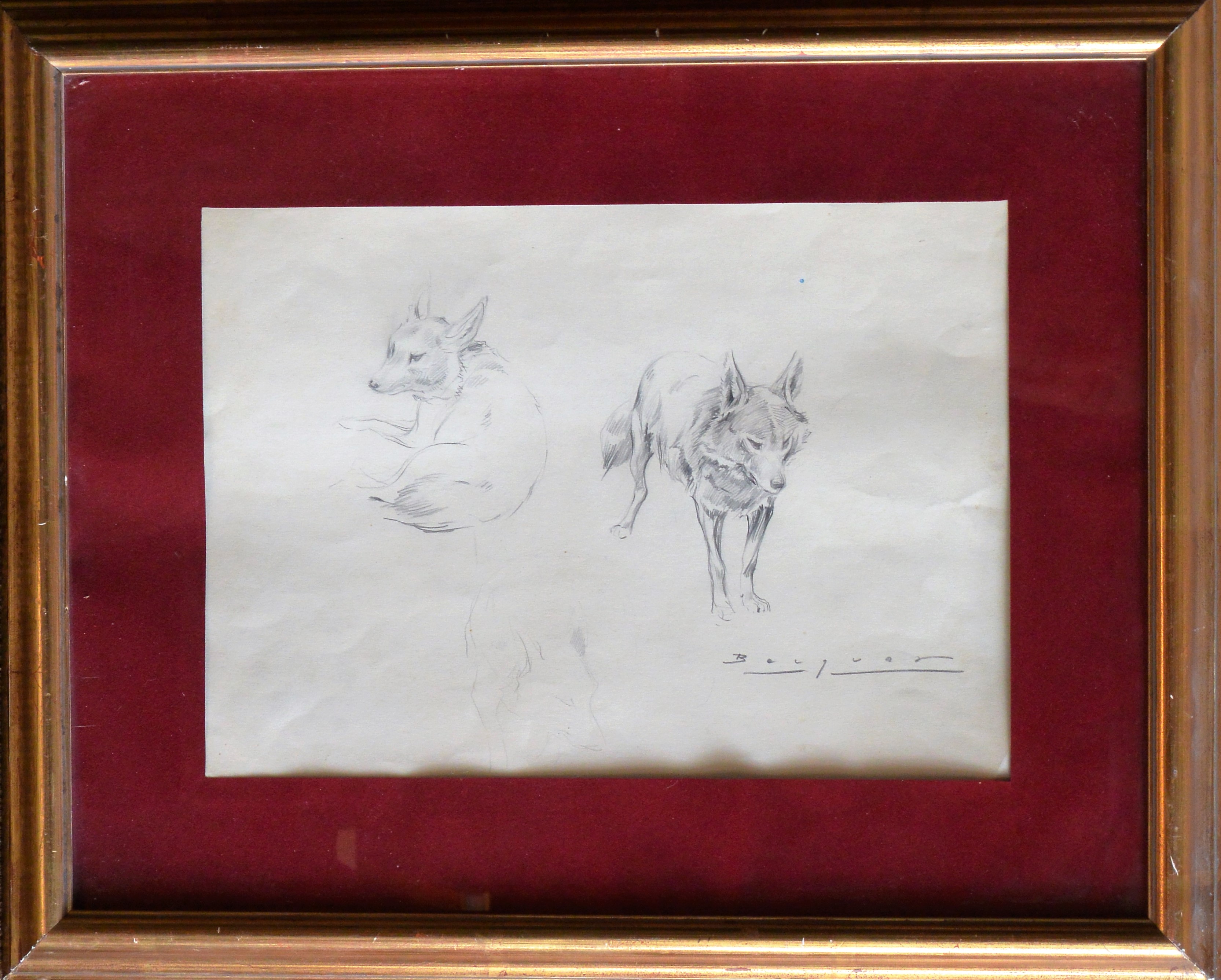 Carlos Becquer, Estudios de zorros, dibujo lapia papel, enmarcado, dibujo 25×35 cms. y marco 43×53 cms.