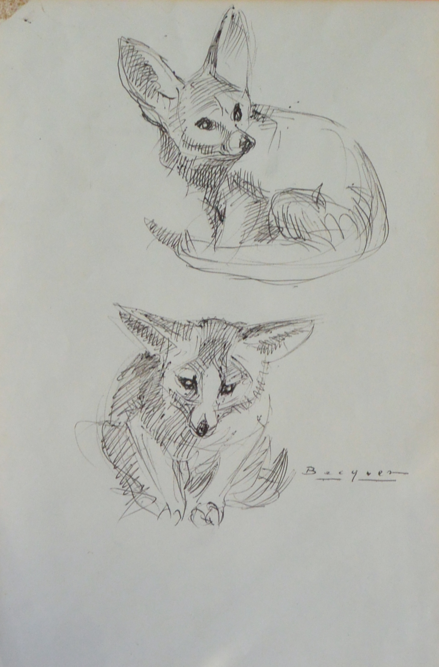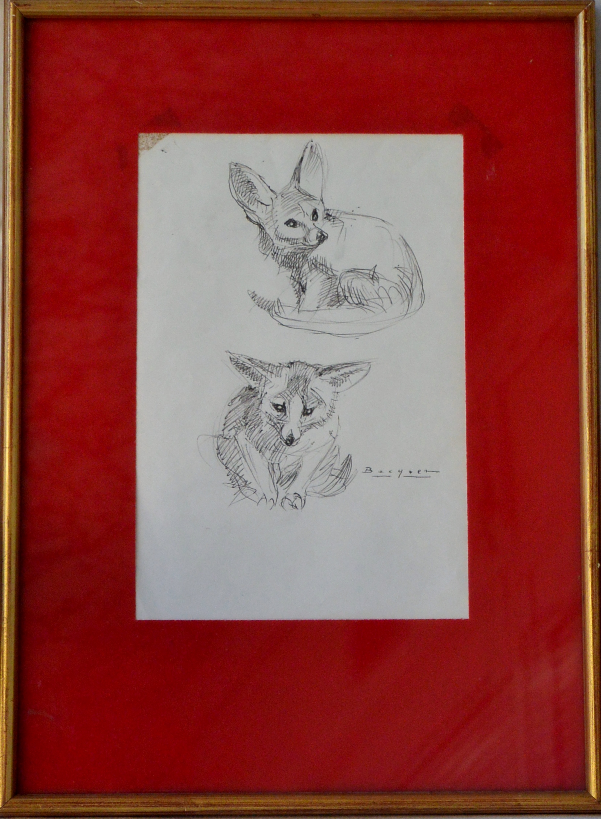 Carlos Becquer, Zorros, dibujo tinta papel, enmarcado, dibujo 24×165 cms. y marco 40×29 cms.