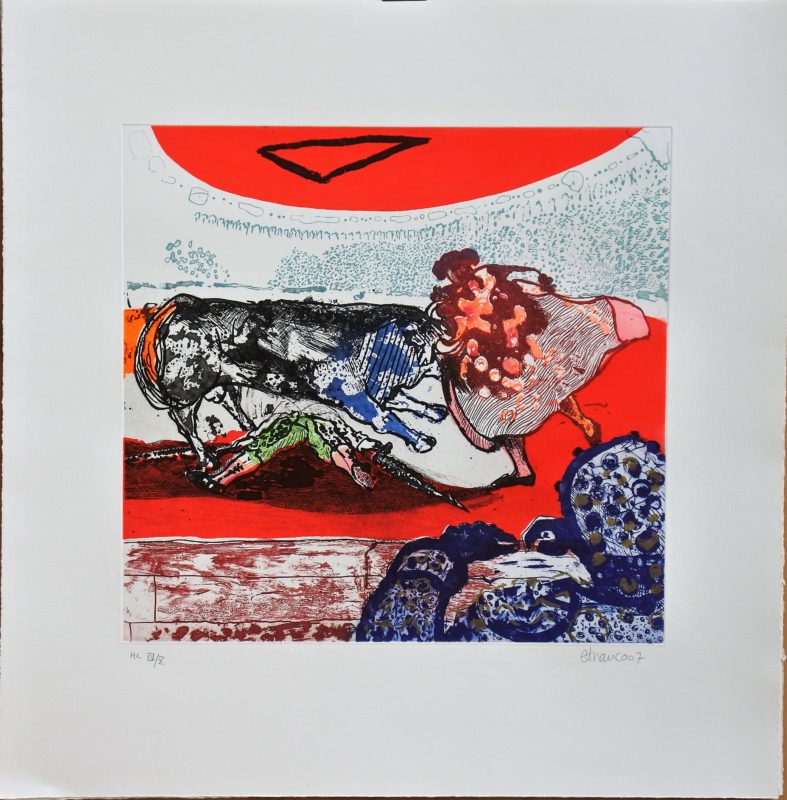 Carlos Franco – «Tauromía, El banderillero muerto» grabado aguafuerte, aguatinta y fotopolimero