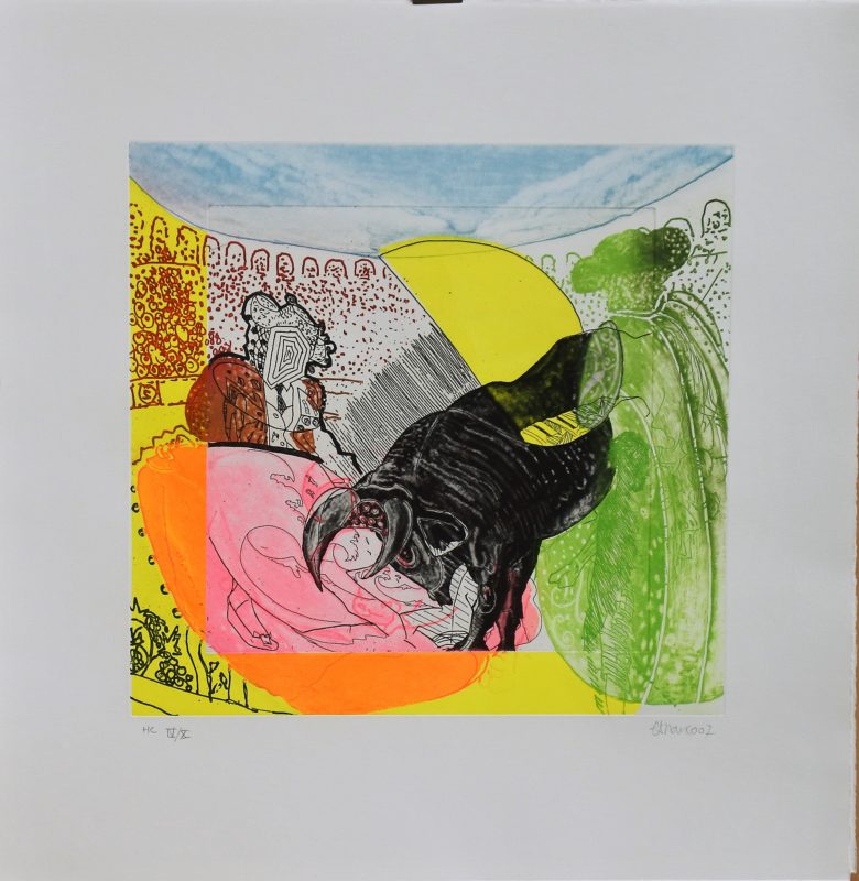 Carlos Franco – «Tauromía, Embarcando al toro» grabado aguafuerte, aguatinta y fotopolimero