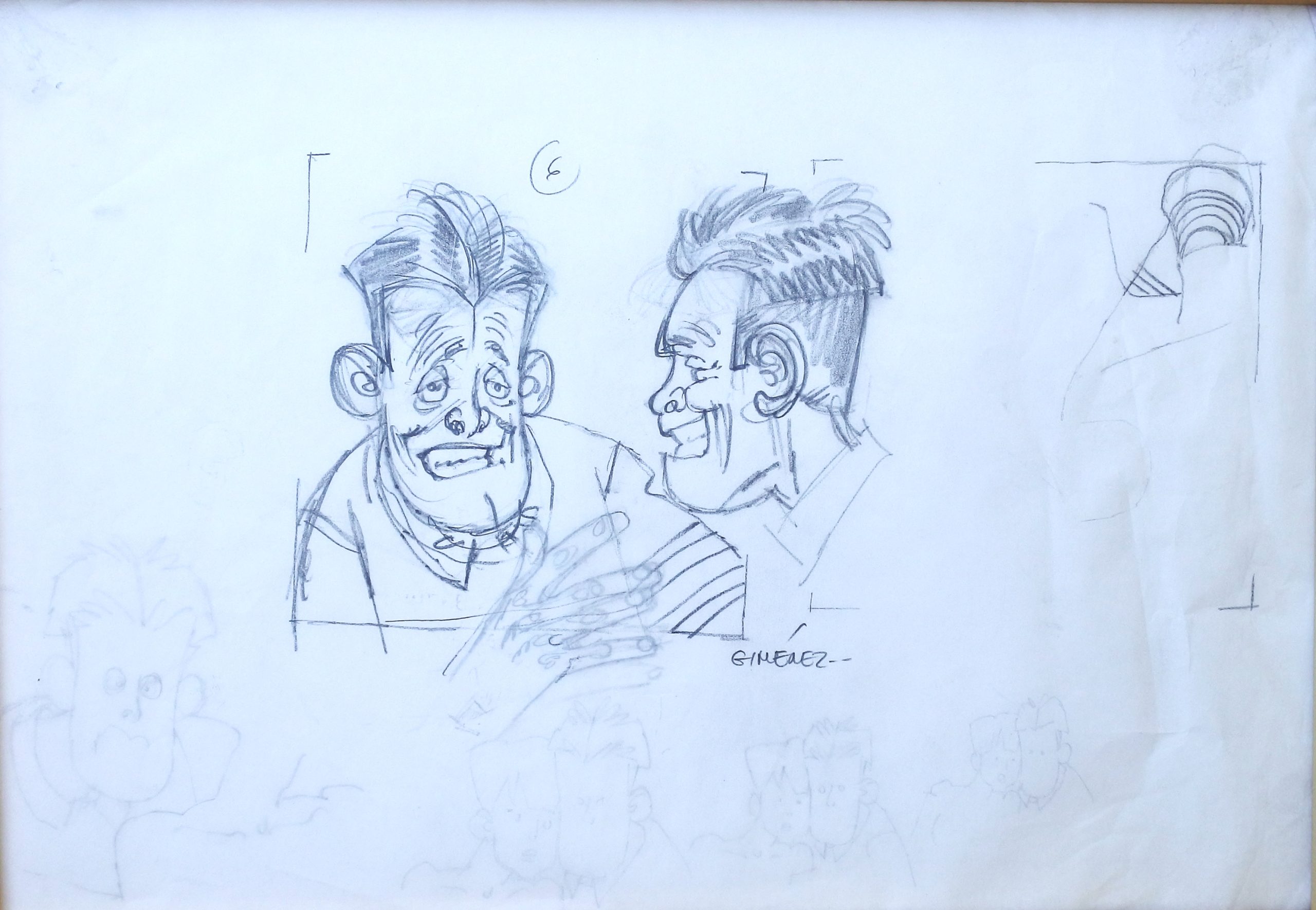 Carlos Gimenez, Confidencias, dibujo original lápiz papel, enmarcado, dibujo 22×32 cms. y marco 24×34 cms.