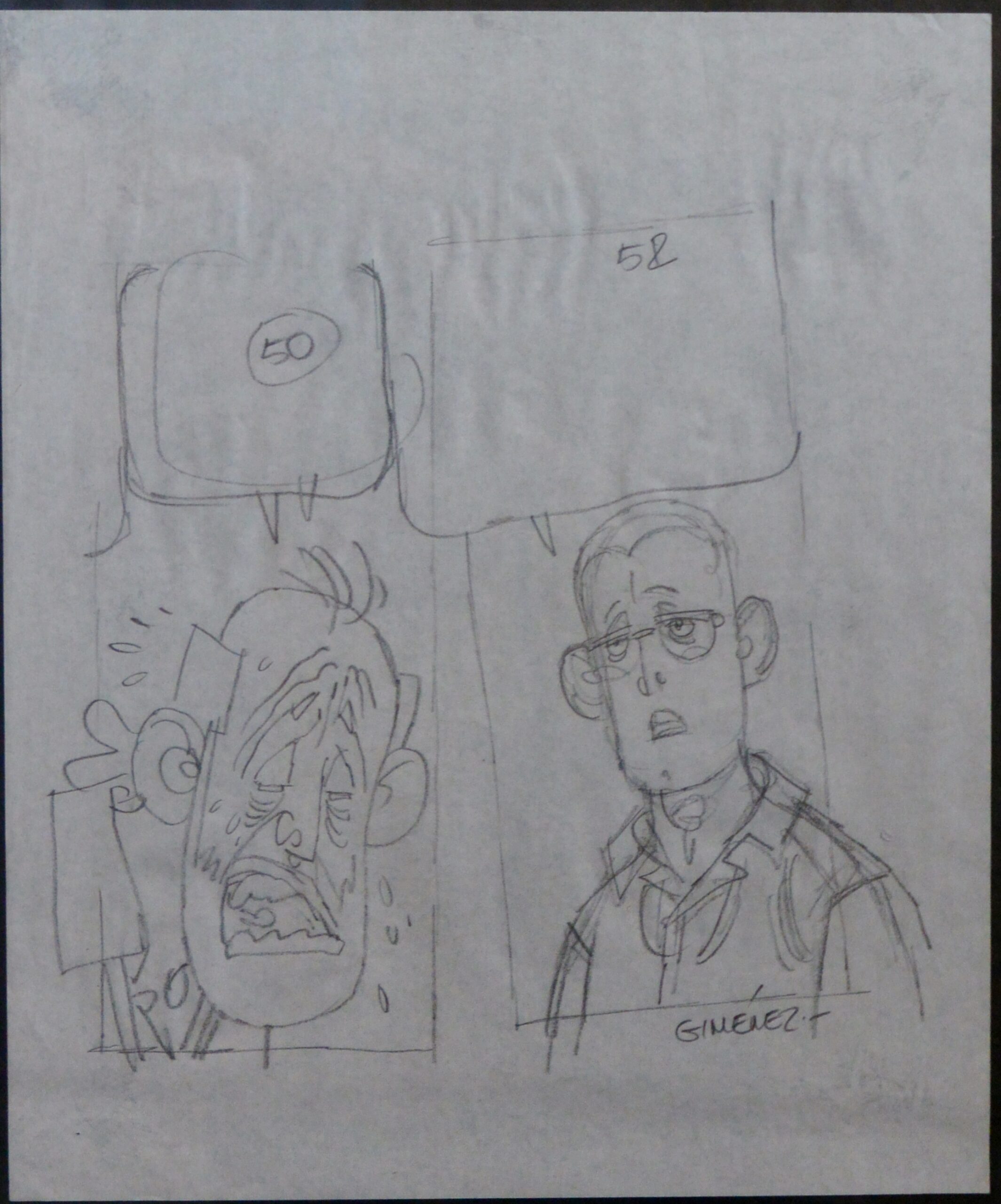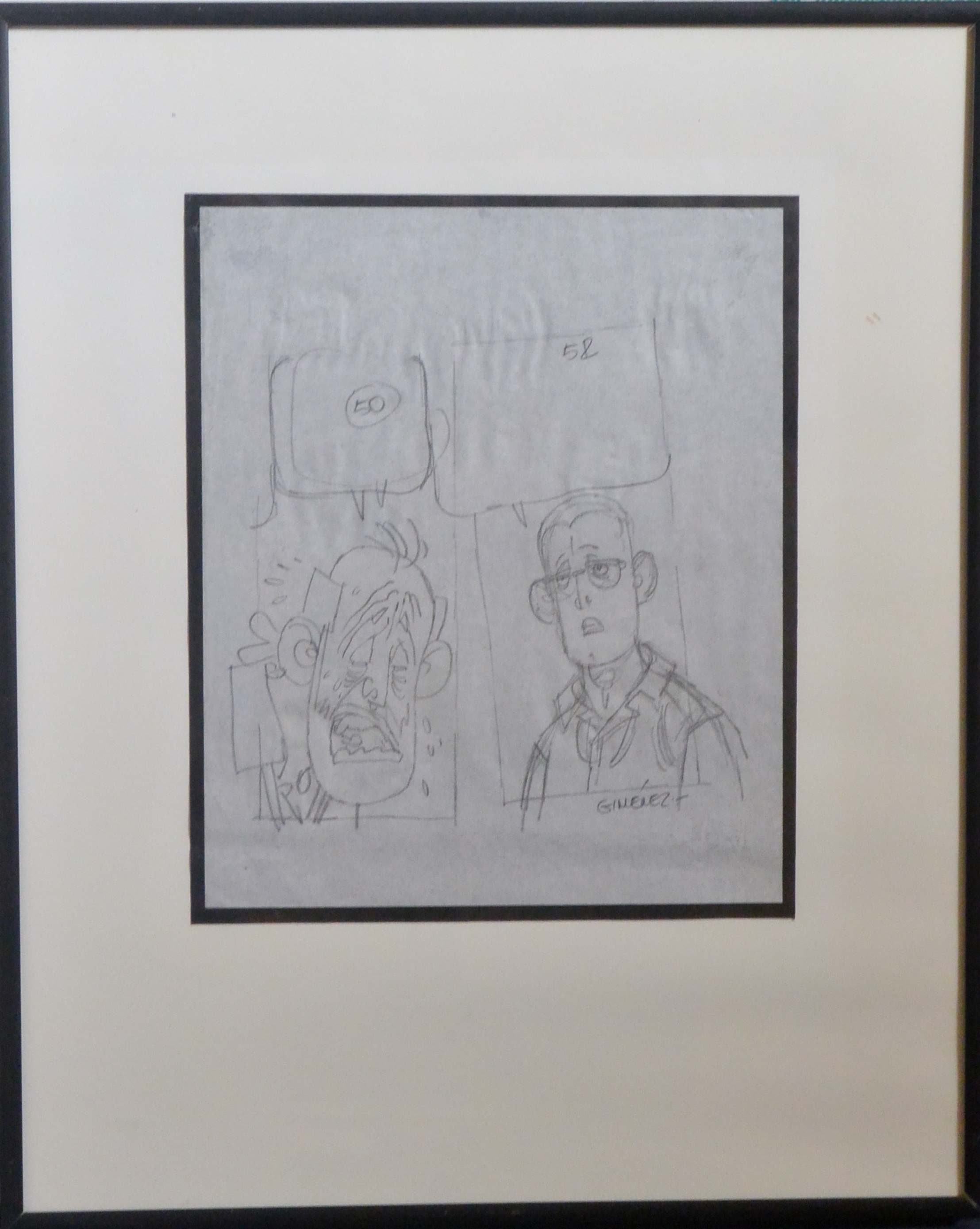 Carlos Gimenez, Viñeta, hombre llorando, dibujo lapiz papel, enmarcado, dibujo 21×17,50 cms. y marco 37,50×30,50 cms. Marco incluido