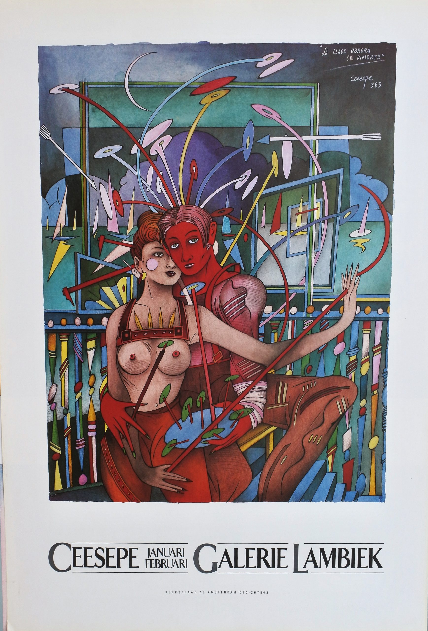 Ceesepe, La clase obrera se divierte, cartel original exposición en Galeria Lambiek de Amsterdam en 1983, 83×57 cms.