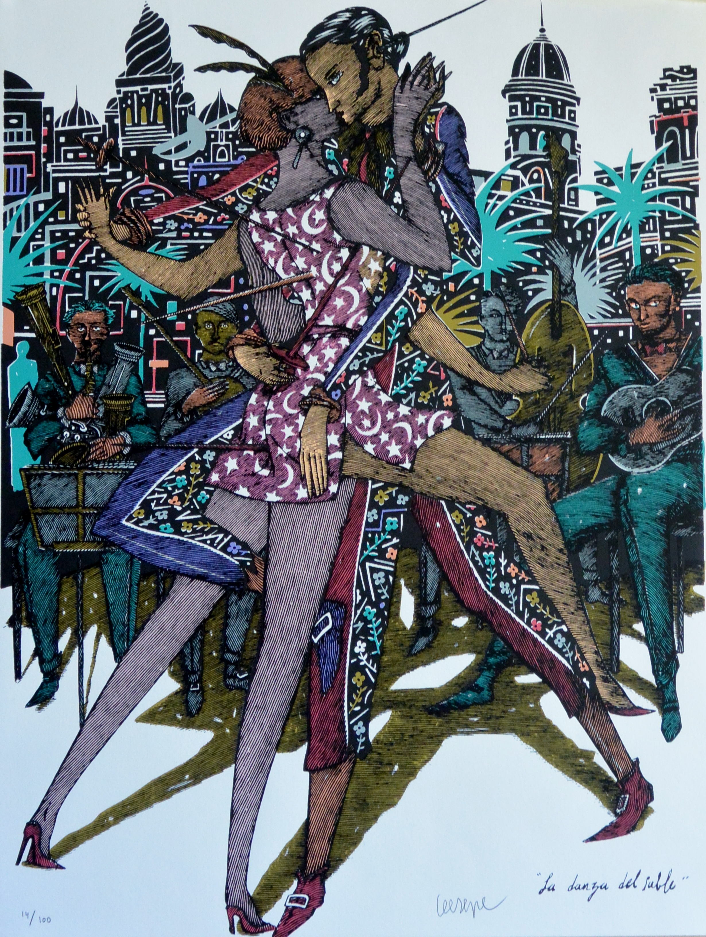 Ceesepe, La danza del Sable, serigrafía, edicion 100 ejemplares, numerado y firmado a lápiz, 65×50 cms.