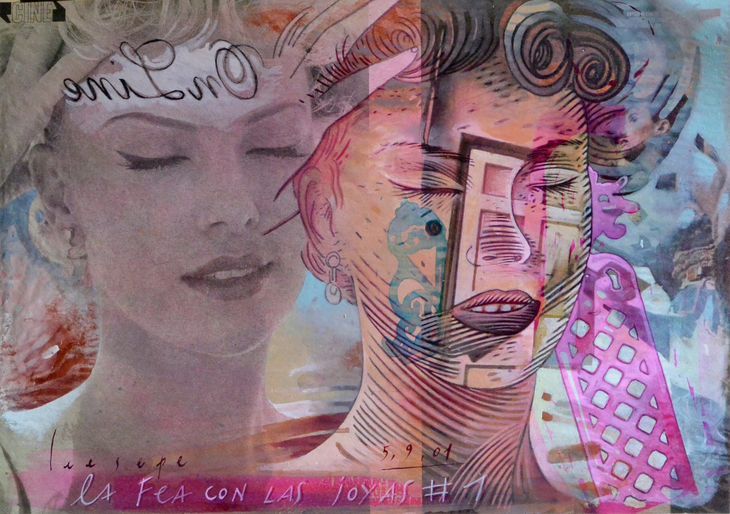 Ceesepe, La fea con las joyas # 1, dibujo original técnica mixta papel, 35,50×49,50 cms.