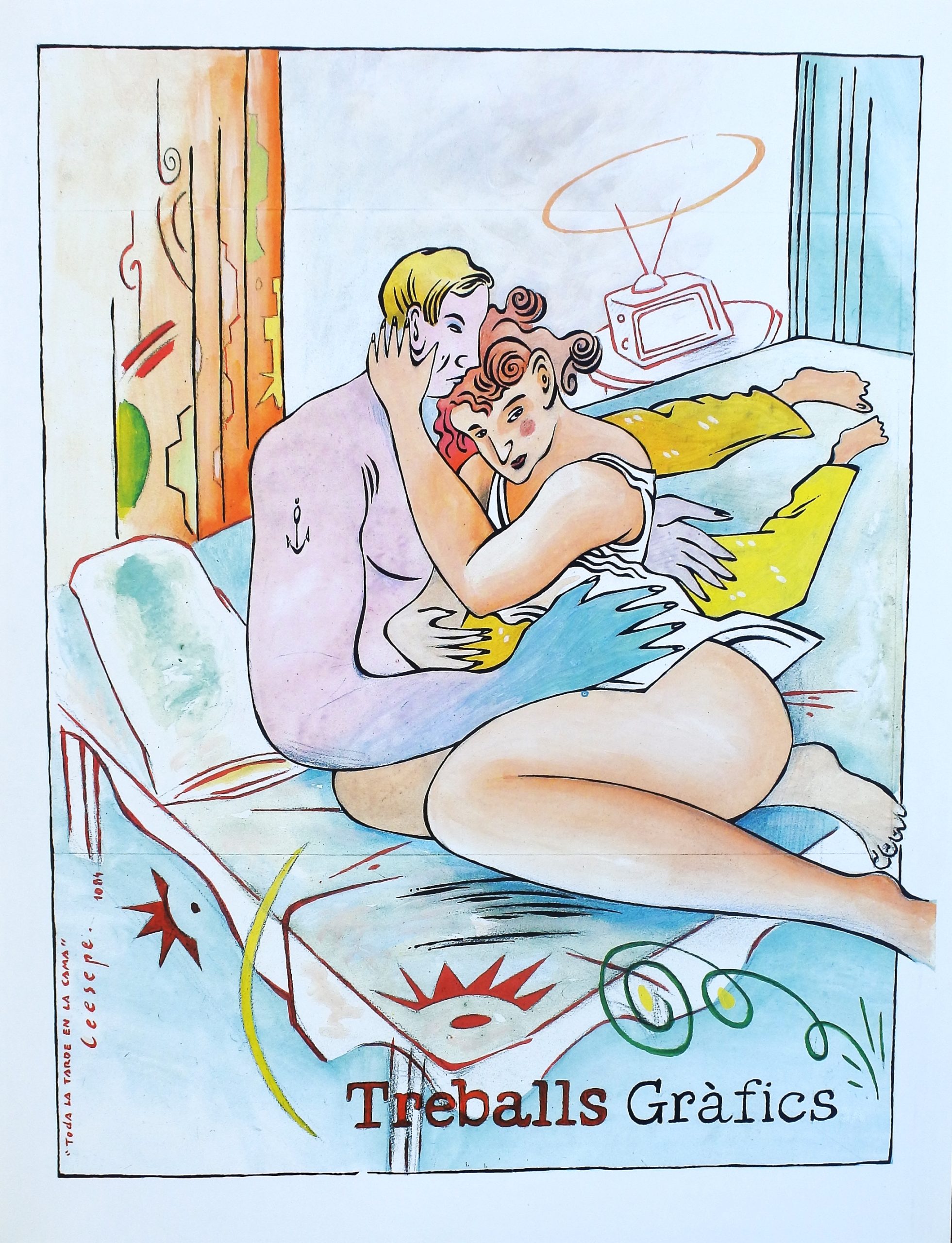 Ceesepe, Toda la noche en la cama, suite La Piconera, lámina, con un texto de Terenci Moix, 32×24,50 cms.