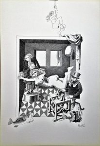 Celedonio Perellón, Demonio, La rueda, litografía perteneciente a la carpeta Mundo Demonio y Carne, edición 266 ejemplares, numerado y firmado a lápiz, 49,50×34,50 cms.