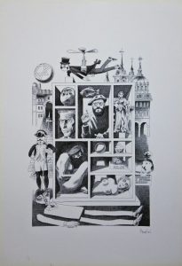Celedonio Perellón, Mundo, El profesor, litografía perteneciente a la carpeta Mundo Demonio y Carne, edición 266 ejemplares, numerado y firmado a lápiz, 49,50×34,50 cms.