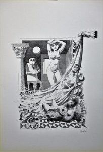 Celedonio Perellón, Mundo, Represión, litografía perteneciente a la carpeta Mundo Demonio y Carne, edición 266 ejemplares, numerado y firmado a lápiz, 49,50×34,50 cms.