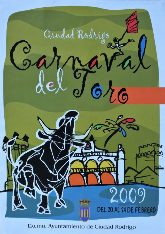 Ciudad Rodrigo, Salamanca, Carnaval del toro 2009, cartel promoción turística, 68×48 cms.