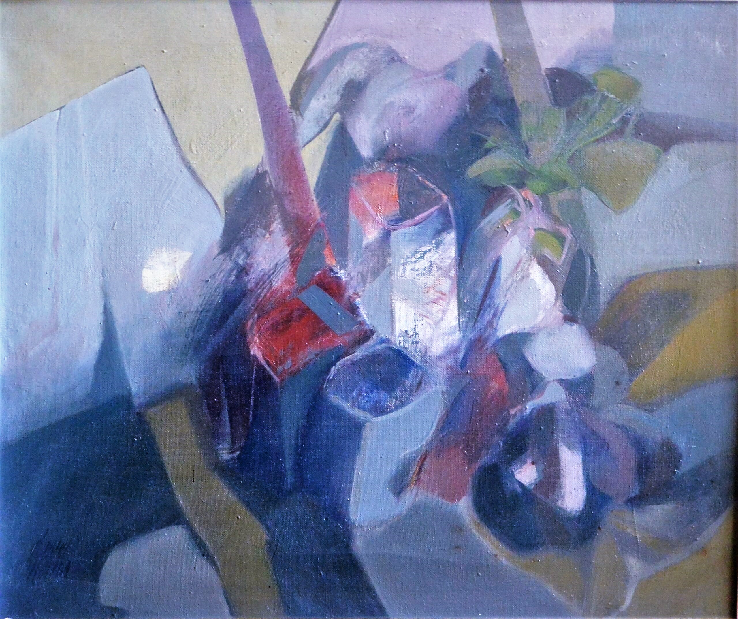 Daniel Merino, Bodega, pintura original oleo sobre lienzo, enmarcado, pintura 46×55 cms. y marco 67×75 cms. Marco incluido