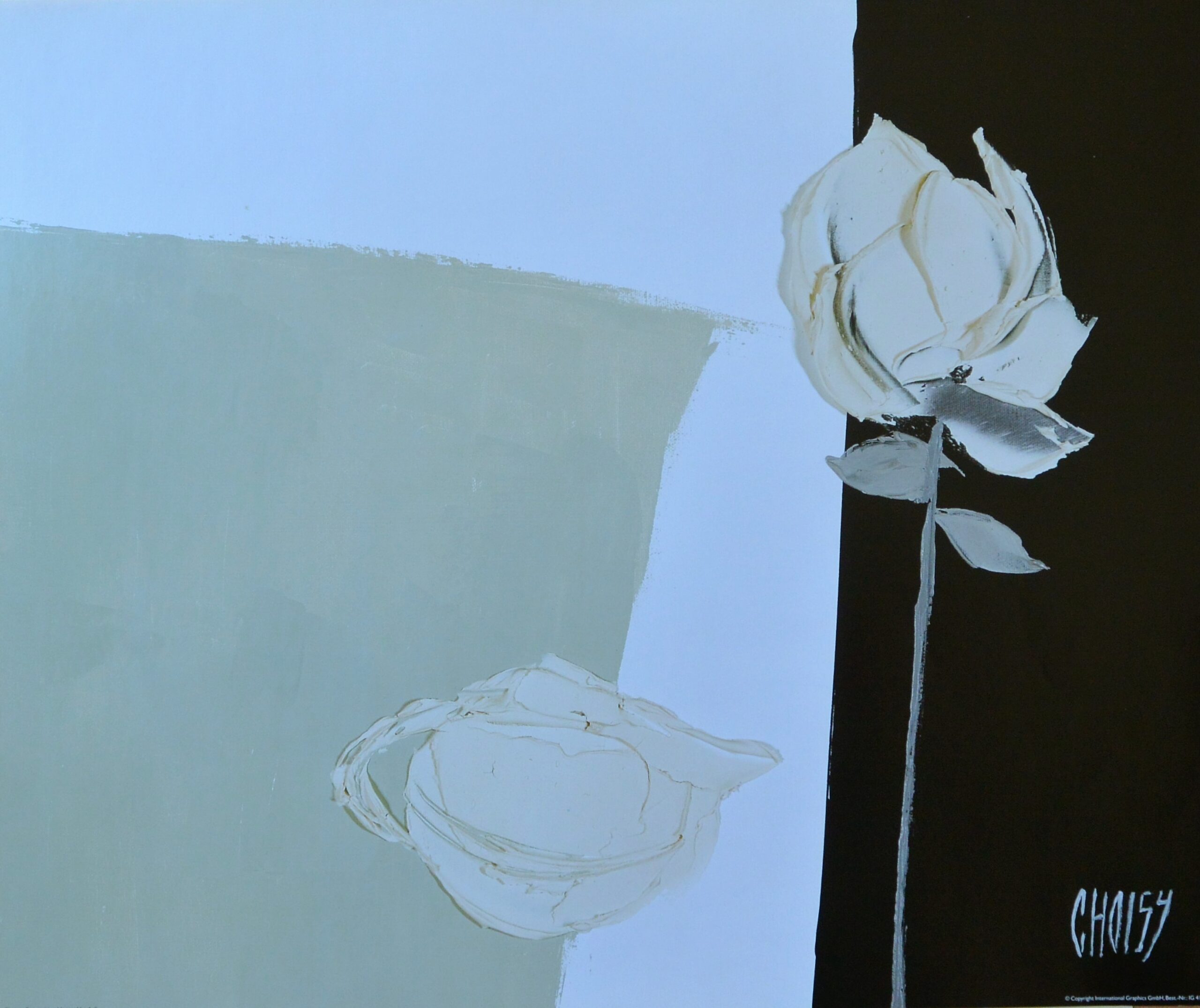 Choisy, Composition à la rose blanche, cartel decoración, 50×60 cms.