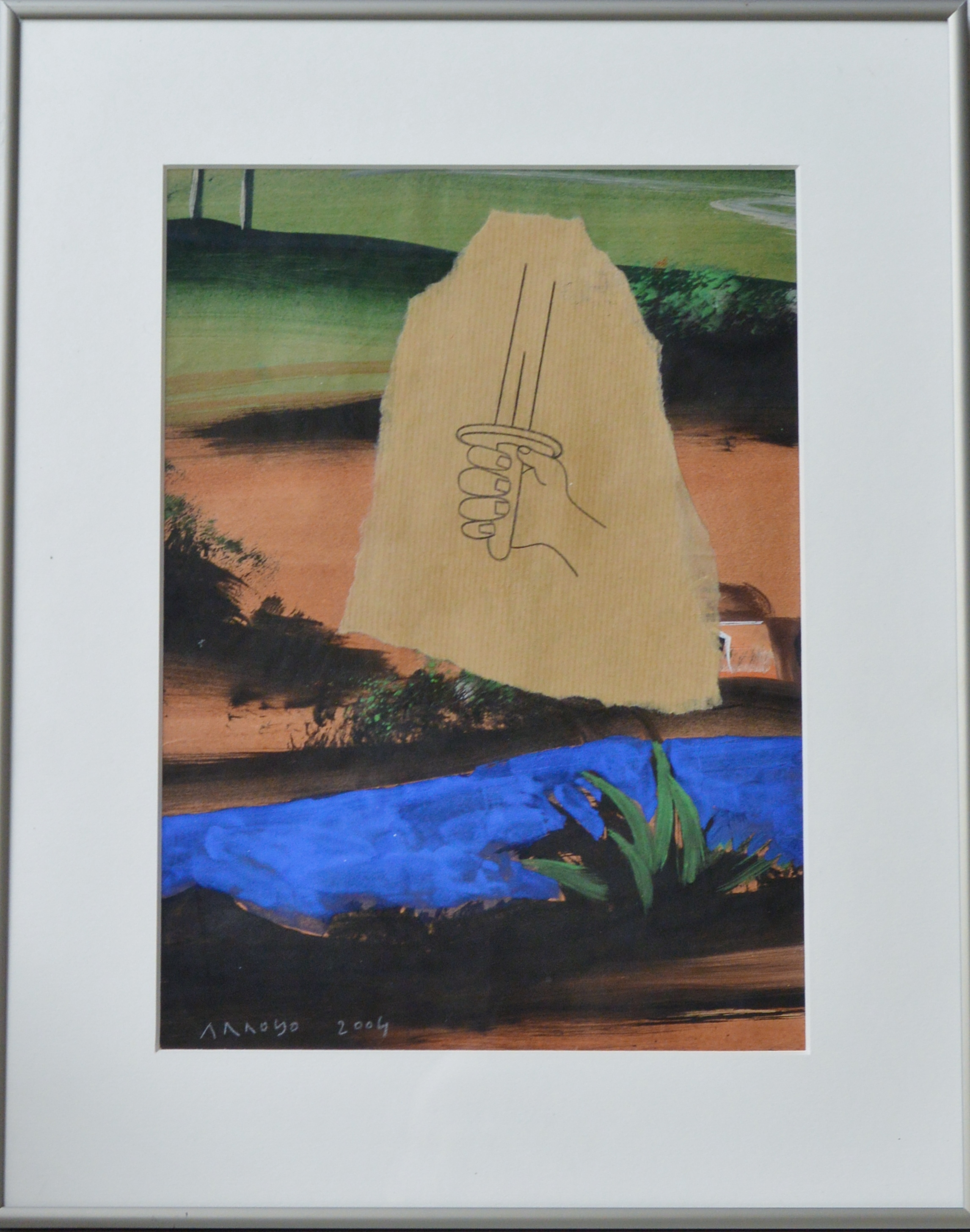 Eduardo Arroyo 2004, Ilustracion para la Biblia, números capítulo 32, técnica mixta y collage papel, enmarcado, dibujo 33×24 cms. y marco 44,50×35,50 cms. Marco incluido