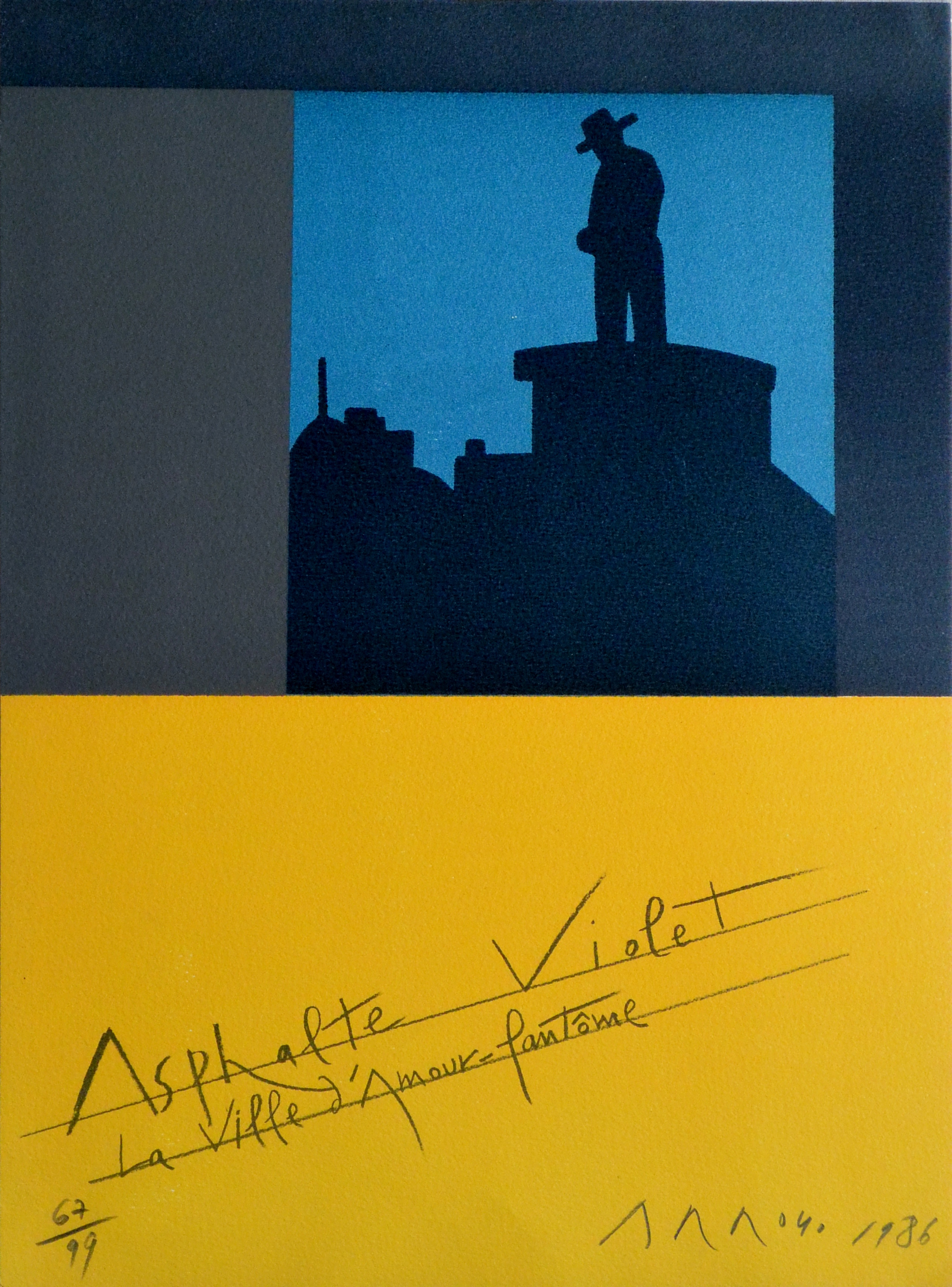 Eduardo Arroyo, Asphalte Violet, litografía, numerada 66/99 y firmado a lápiz en 1986, 38×28 cms.