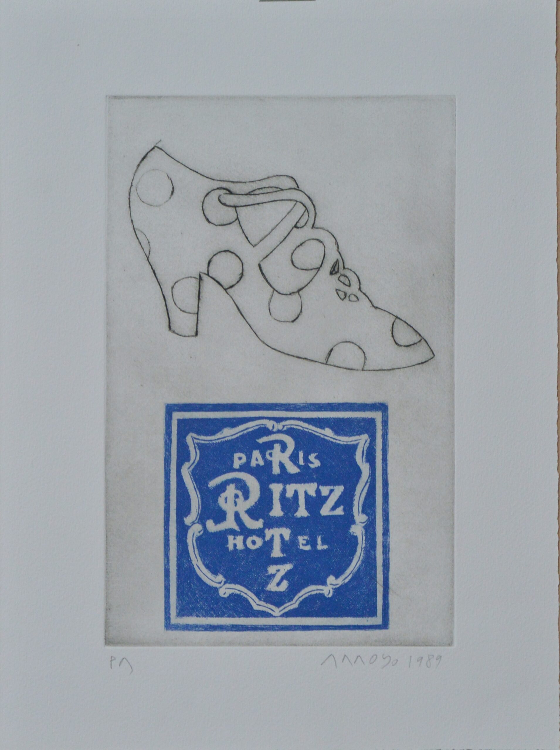 Eduardo Arroyo, Ritz, Punta seca y aguafuerte, edición 40 ejemplares, numerado pa y firmado a lápiz, 38×28 y plancha 27,50×27,50 cms.