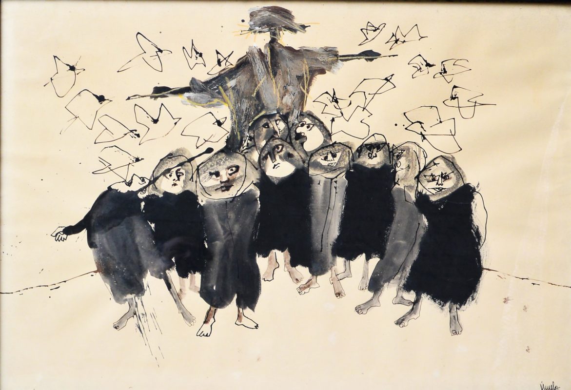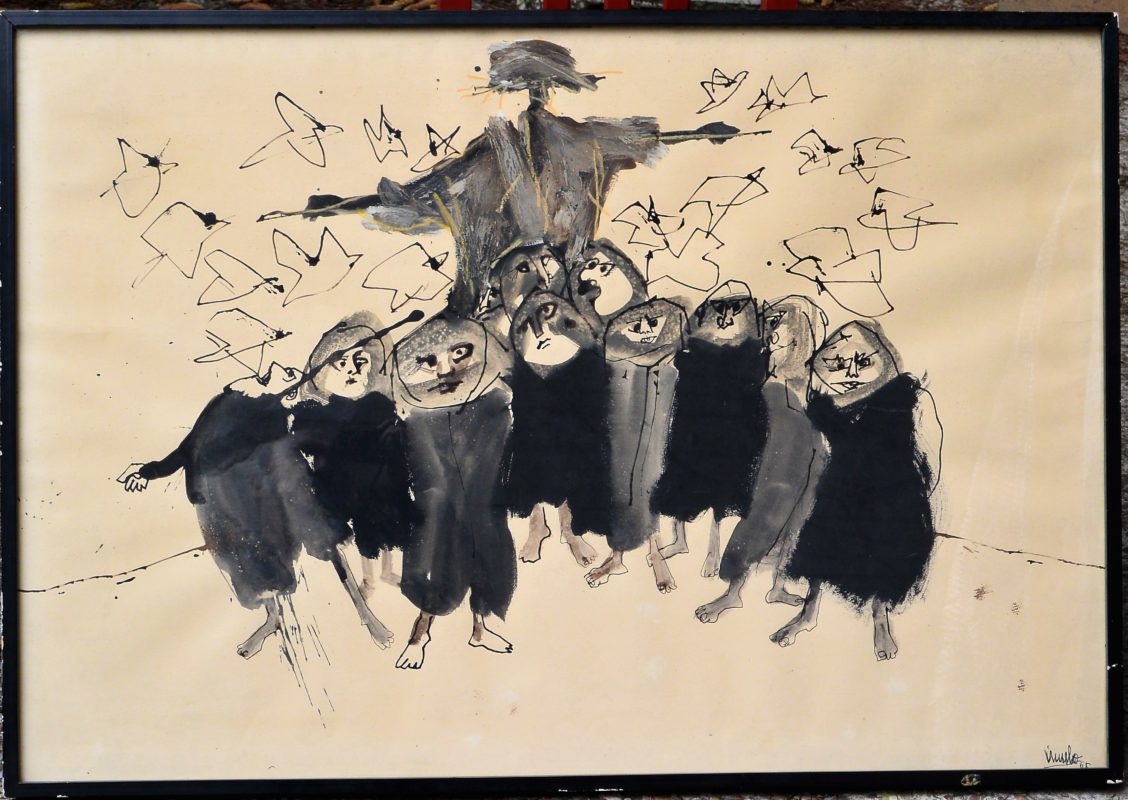 Eduardo Urculo 1965, El espantapájaros, Dibujo Tinta, òleo y aguada papel, enmarcado, dibujo 69×100 cms. y marco 71×102 cms.