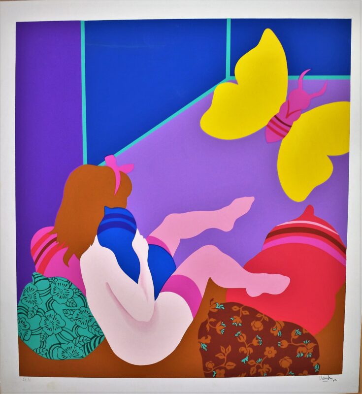 Eduardo Urculo, Desnudo y Mariposa amarilla, litografía, edición 75 ejemplares, numerada, datada 72 y firmada a lápiz, 78×72 cms.