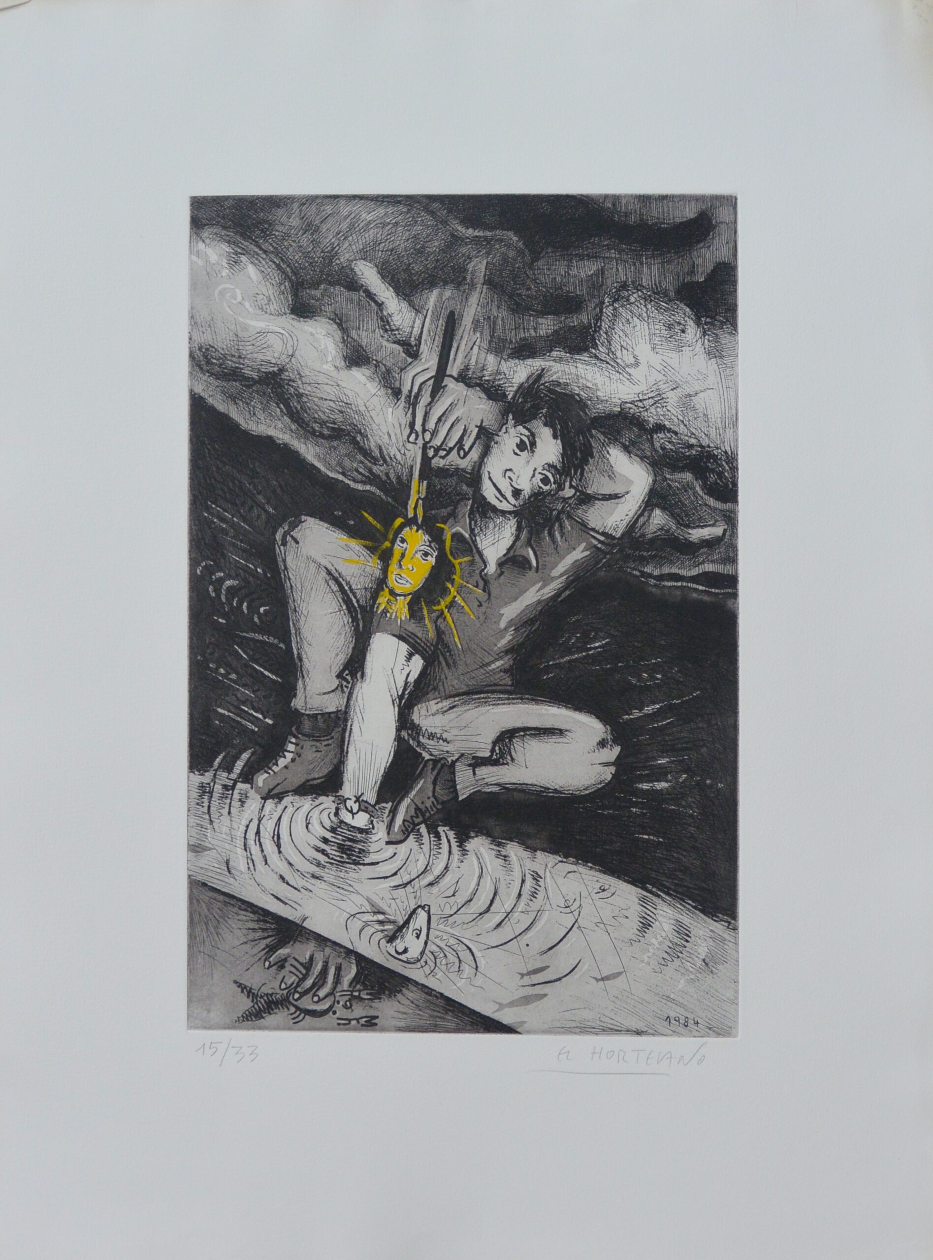 El Hortelano, (José Alfonso Morera Ortiz), Sin título, grabado, edición 33 ejemplares, numerado y firmado a lápiz, plancha 49,50×32,50 cms.y papel 76×56,50 cms.