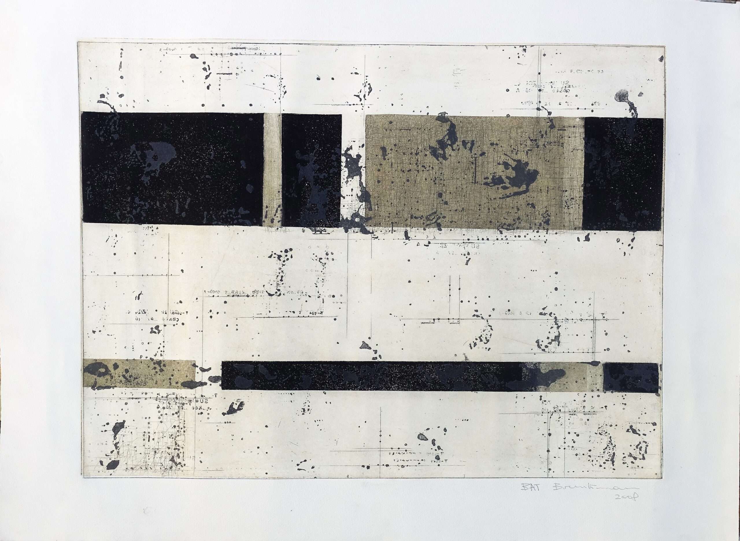 Enrique Brinkmann, Composición S.T., grabado aguafuerte, numerado BAT (Bon a tirer) y firmado a lápiz, plancha 44×59 cms. y papel 56×76 cms.