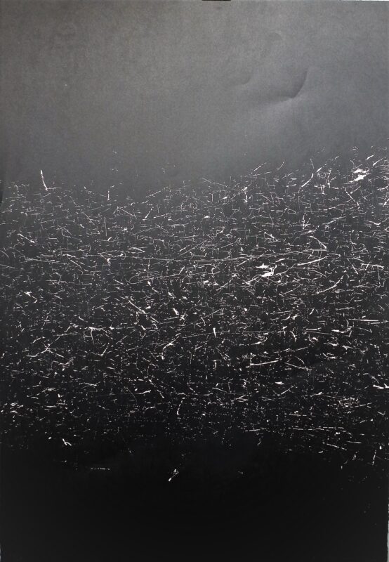Enrique Brinkmann, Grafismos sobre fondo negro, litografía, edición 75 ejemplares, numerado y firmado a lápiz, 100×70 cms.