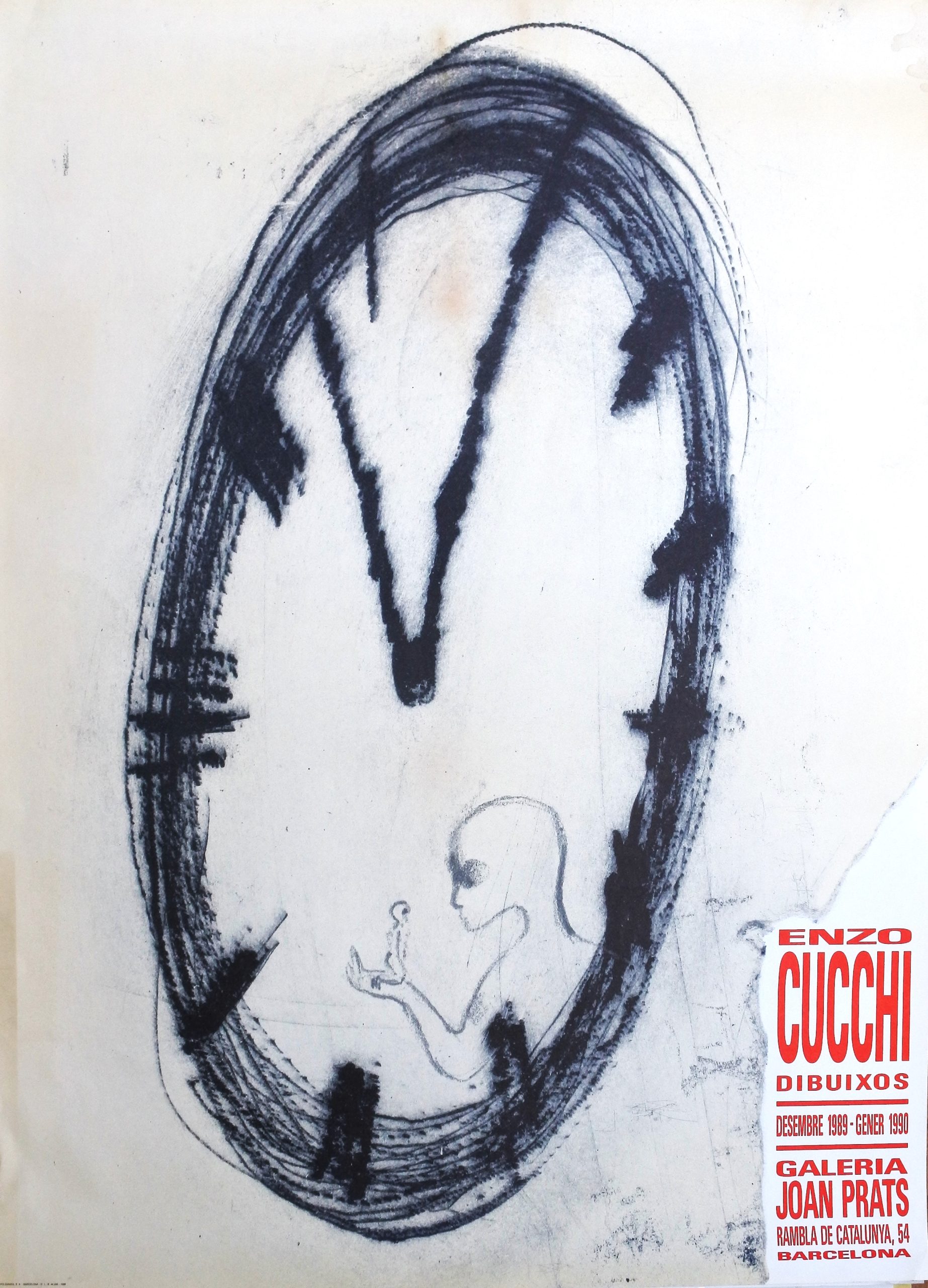 Enzo Cucchi, Dibuixos, cartel original exposición en Galería Joan Prats Barcelona en 1989-90, 76×56 cms.