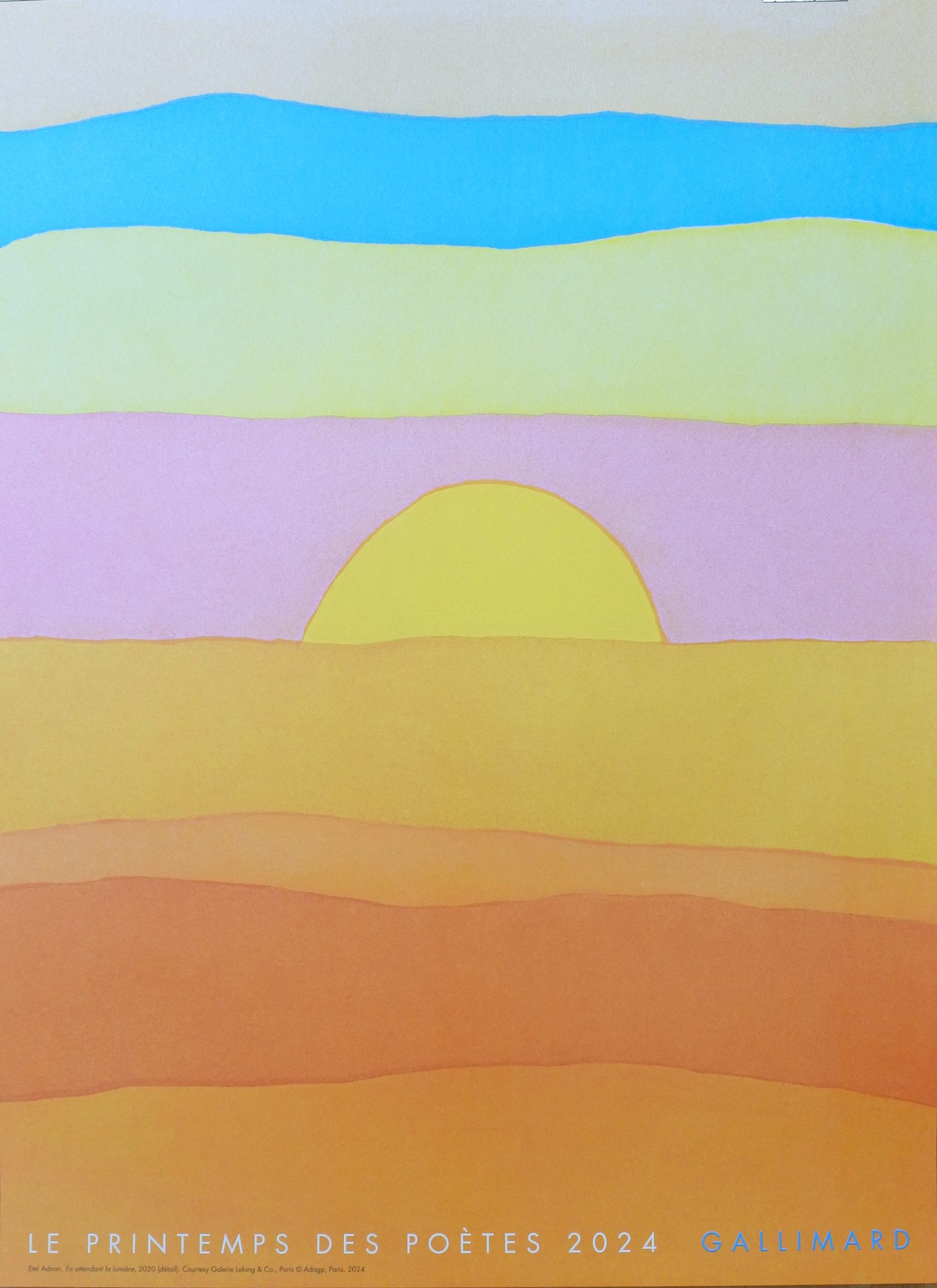 Etel Adnan, En attendant la lumière, cartel original edición limitada exposición Le printems des poètes patrocinado por la editorial Gallimard, 58×43 cms.
