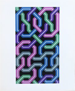 Eusebio Sempere, La Alhambra, casida V, serigrafia, edición 93 ejemplares, numerado y firmado a lápiz, 61×50 cms. Se acompaña con un poema arábigo andaluz de Ibn Atiyya