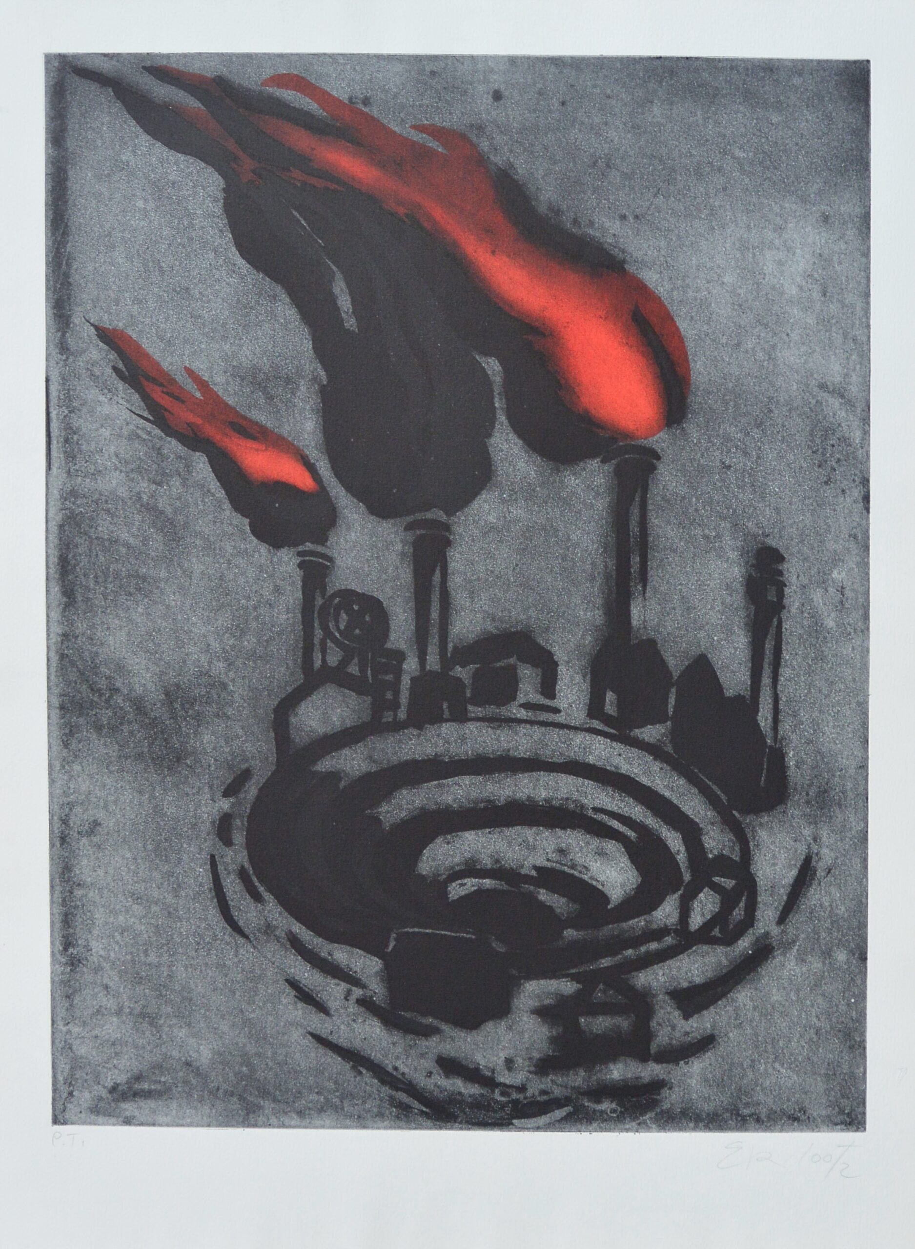 Eva Lootz, Fábrica, serigrafía, numerado pt y firmado a lápiz, papel 76×56 y plancha 64×50 cms.
