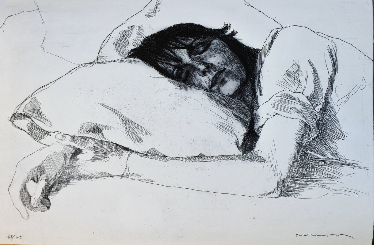 Fernando Bellver 1978, Joven dormida, grabado, edición 75 ejemplares, numerado y firmado a lápiz, 33×49 cms.